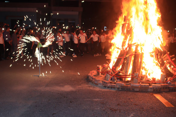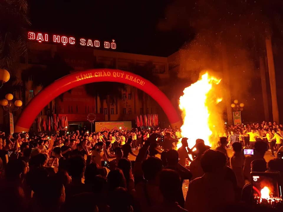 Cùng với các hoạt động sôi nổi chào mừng Lễ kỷ niệm 50 năm truyền thống đào tạo là đêm Hội trại truyền thống, toàn bộ khuôn viên của Nhà trường lung linh, huyền ảo trong sắc màu, ánh sáng và âm nhạc. Đặc biệt là phần đốt lửa trại, ngọn lửa được rước từ nơi văn hóa tâm linh “Không gian văn hóa Hồ Chí Minh” với 50 cán bộ, giảng viên, sinh viên tượng trưng cho 50 năm truyền thống đào tạo của Nhà trường. Lửa trại bùng cháy rực hồng, tựa như nhiệt huyết của hàng trăm con người đang sục sôi khí thế, nắm tay nhau đoàn kết vượt qua mọi khó khăn cùng xây dựng Nhà trường ổn định và phát triển.