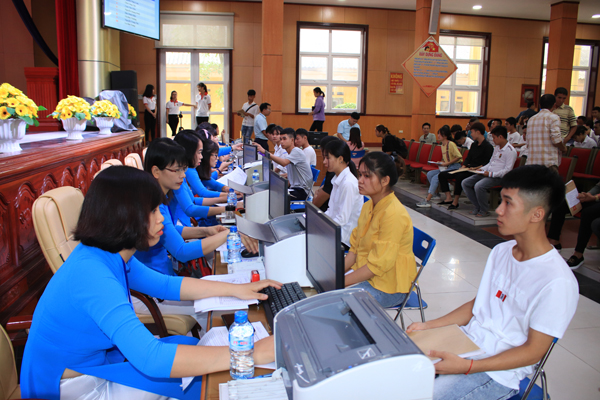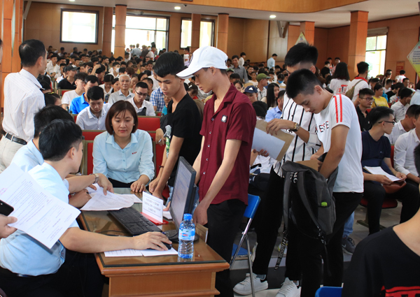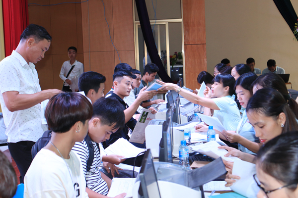 Cán bộ, viên chức làm thủ tục nhập học cho tân sinh viên