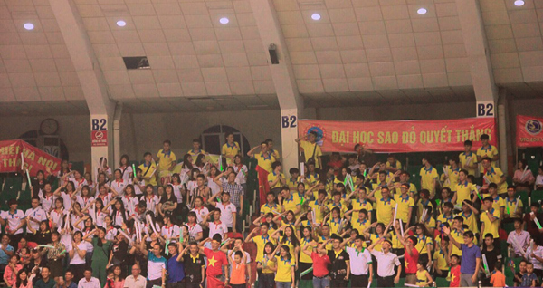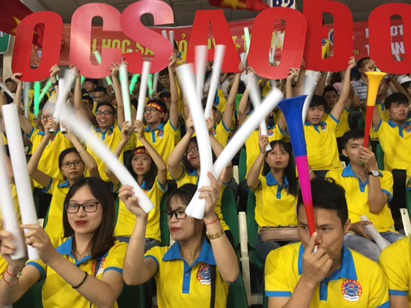 Cổ động viên Trường Đại học Sao Đỏ cháy hết mình cùng với đội tuyển Robocon của Nhà trường