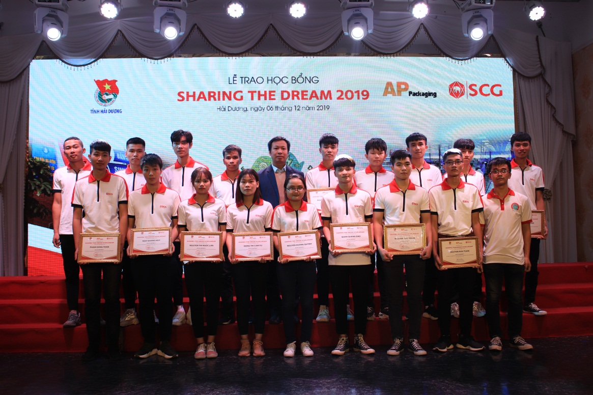 Học bổng “Sharing the dream” là chương trình ý nghĩa được Tập đoàn SCG Việt Nam khởi sướng từ năm 2007. Chương trình đã giúp đỡ, hỗ trợ và trao cơ hội học tập cho các bạn trẻ với hơn 4.000 suất học bổng cho học sinh, sinh viên có hoàn cảnh khó khăn tại các tỉnh, thành phố trong cả nước. Năm 2019, Đoàn TNCS Hồ Chí Minh tỉnh Hải Dương phối hợp với Công ty TNHH Bao bì AP (thuộc Tập đoàn SCG Việt Nam) tổ chức chương trình trao học bổng “Sharing the dream 2019” cho 50 bạn sinh viên vượt khó đạt thành tích cao trong học tập và rèn luyện, trong đó có 19 sinh viên Trường Đại học Sao Đỏ.