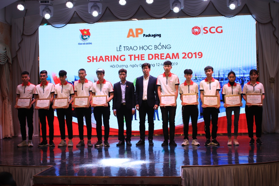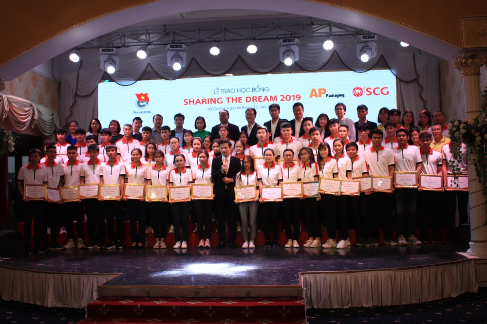 Nhằm chia sẻ, đồng hành biến ước mơ của các bạn sinh viên có hoàn cảnh khó khăn trên địa bàn tỉnh Hải Dương thành hiện thực, chiều ngày 6/12/2019, tại thành phố Hải Dương, Tỉnh đoàn phối hợp với Công ty TNHH Bao bì AP (thuộc Tập đoàn SCG Việt Nam) tổ chức chương trình trao học bổng “Sharing the dream 2019” cho 50 bạn sinh viên có hoàn cảnh khó khăn đạt thành tích tốt trong học tập và rèn luyện với tổng trị giá 300 triệu đồng.