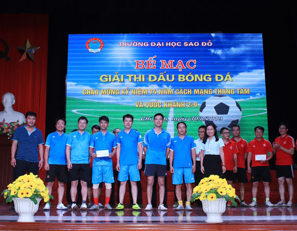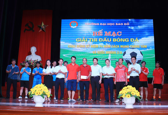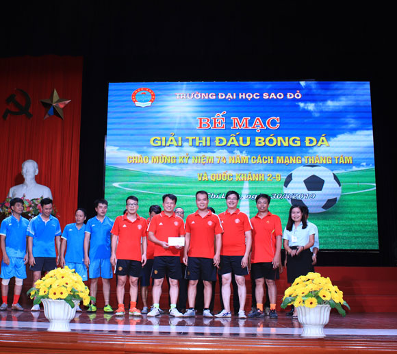 Chiều ngày 30/8/2019, Công đoàn Trường Đại học Sao Đỏ tổ chức bế mạc giải bóng đá chào mừng 74 năm Cách mạng tháng Tám và Quốc khánh 2/9. Tham dự bế mạc có TS. Nguyễn Thị Kim Nguyên – Phó Hiệu trưởng, Chủ tịch Công đoàn; NGƯT. TS Vũ Quang Thập - Phó Hiệu trưởng; Các đồng chí trong Thường vụ Công đoàn, các vận động viên cùng đông đảo cán bộ, viên chức Nhà trường.