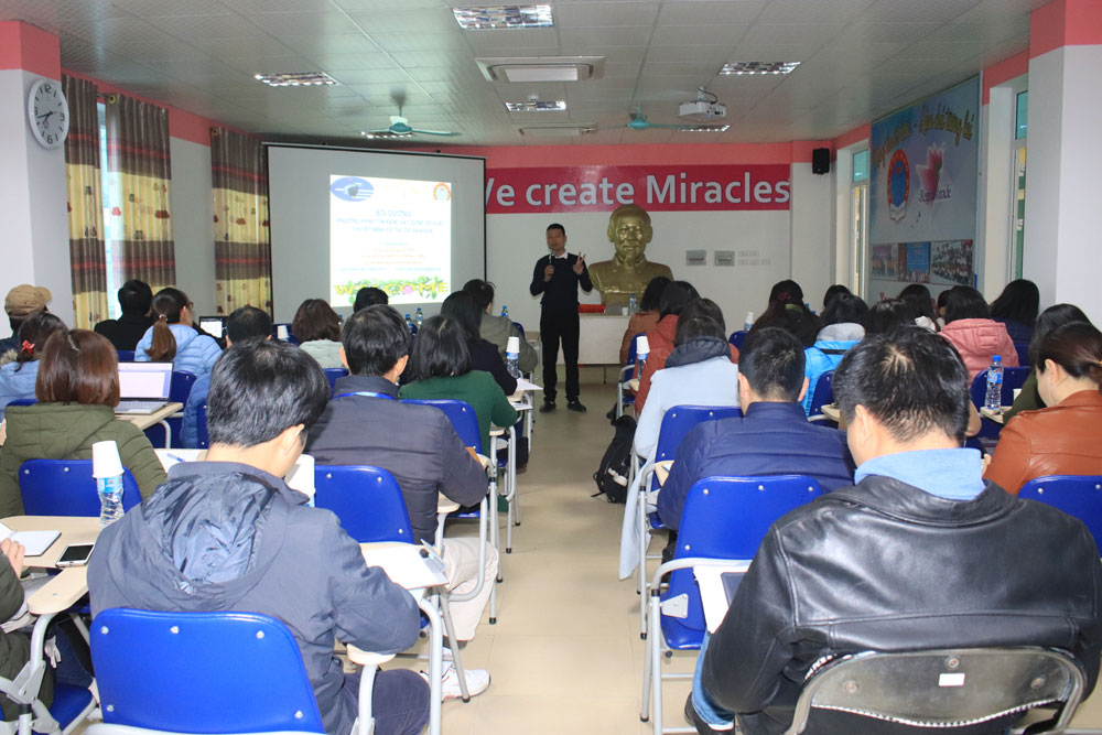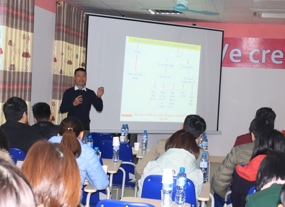 TS Ngô Hữu Mạnh – Trưởng phòng Quản lý khoa học và Hợp tác Quốc tế trao đổi và chia sẻ kinh nghiệm tại lớp bồi dưỡng