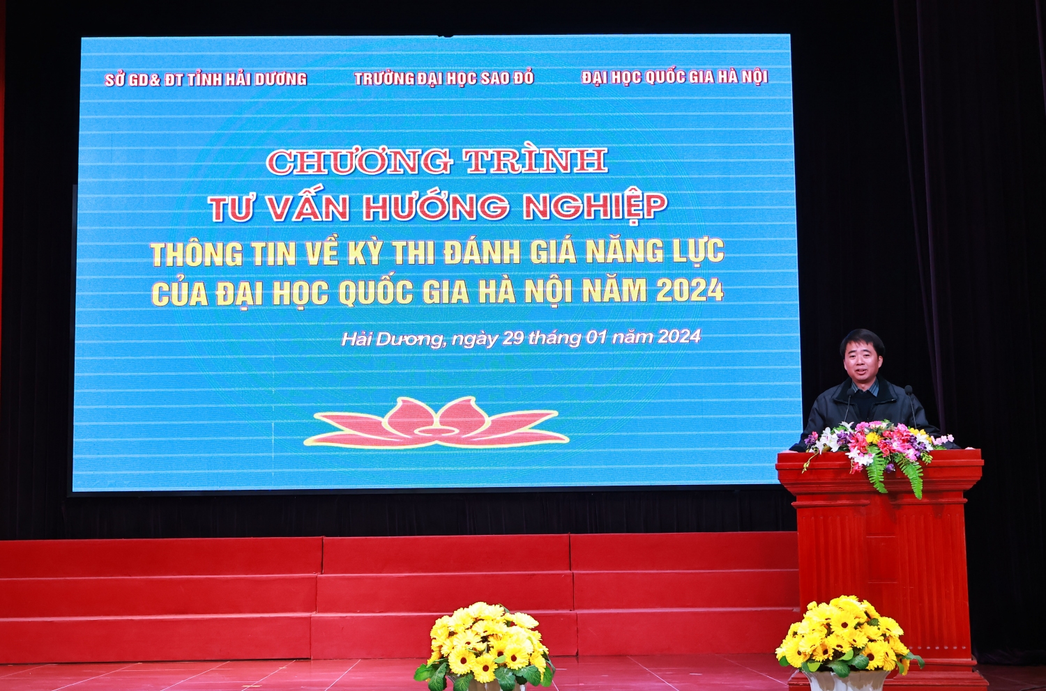 Nhằm giúp các em học sinh lựa chọn được ngành học đúng với năng lực, sở trường, đồng thời giúp các trường hiểu rõ về kỳ thi đánh giá năng lực, sáng ngày 29/01/2024, Sở Giáo dục và Đào tạo tỉnh Hải Dương phối hợp với Trung tâm Khảo thí - Đại học Quốc gia Hà Nội và Trường Đại học Sao Đỏ tổ chức Chương trình tư vấn hướng nghiệp thông tin về kỳ thi đánh giá năng lực của Đại học Quốc gia Hà Nội năm 2024.