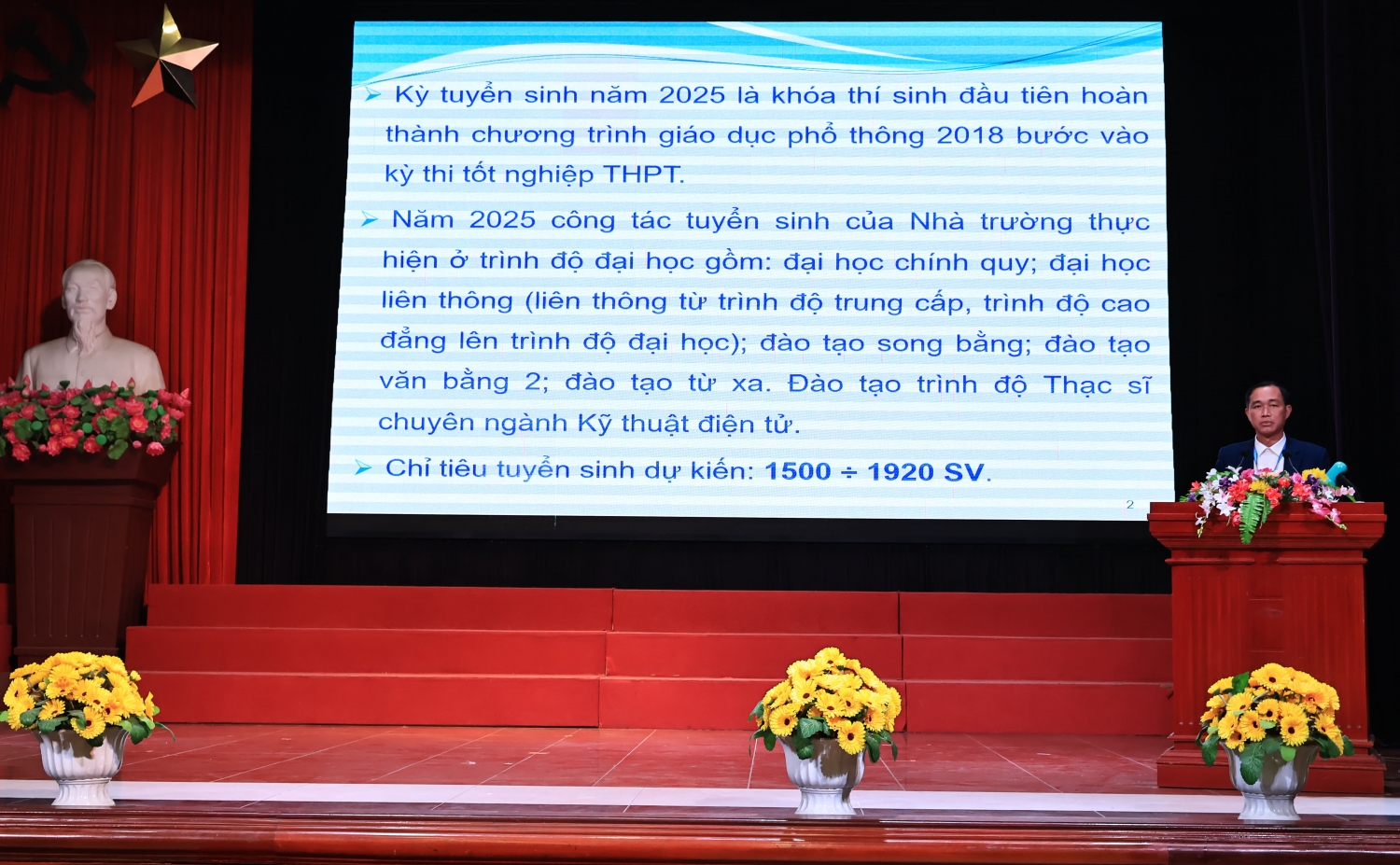 TS. Đỗ Văn Đỉnh – Phó Hiệu trưởng triển khai, quán triệt thực hiện công tác tuyển sinh năm 2025          TS. Đỗ Văn Đỉnh – Phó Hiệu trưởng triển khai, quán triệt thực hiện công tác tuyển sinh năm 2025 làm rõ các nội dung như các mốc thời gian đăng ký xét tuyển, phương thức xét tuyển, định hướng công tác truyền thông,…