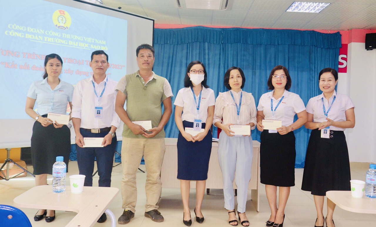 Nhân dịp Tháng Công nhân, thay mặt Ban Thường vụ Công đoàn Trường Đại học Sao Đỏ, TS Nguyễn Thị Kim Nguyên – Phó Bí thư Đảng ủy, Phó Hiệu trưởng, Chủ tịch Công đoàn Trường đã trao quà hỗ trợ của Công đoàn Công Thương Việt Nam cho 07 đoàn viên có hoàn cảnh khó khăn. Món quà mang ý nghĩa thiết thực nhằm động viên kịp thời các đoàn viên vượt qua những khó khăn, vất vả, yên tâm công tác.