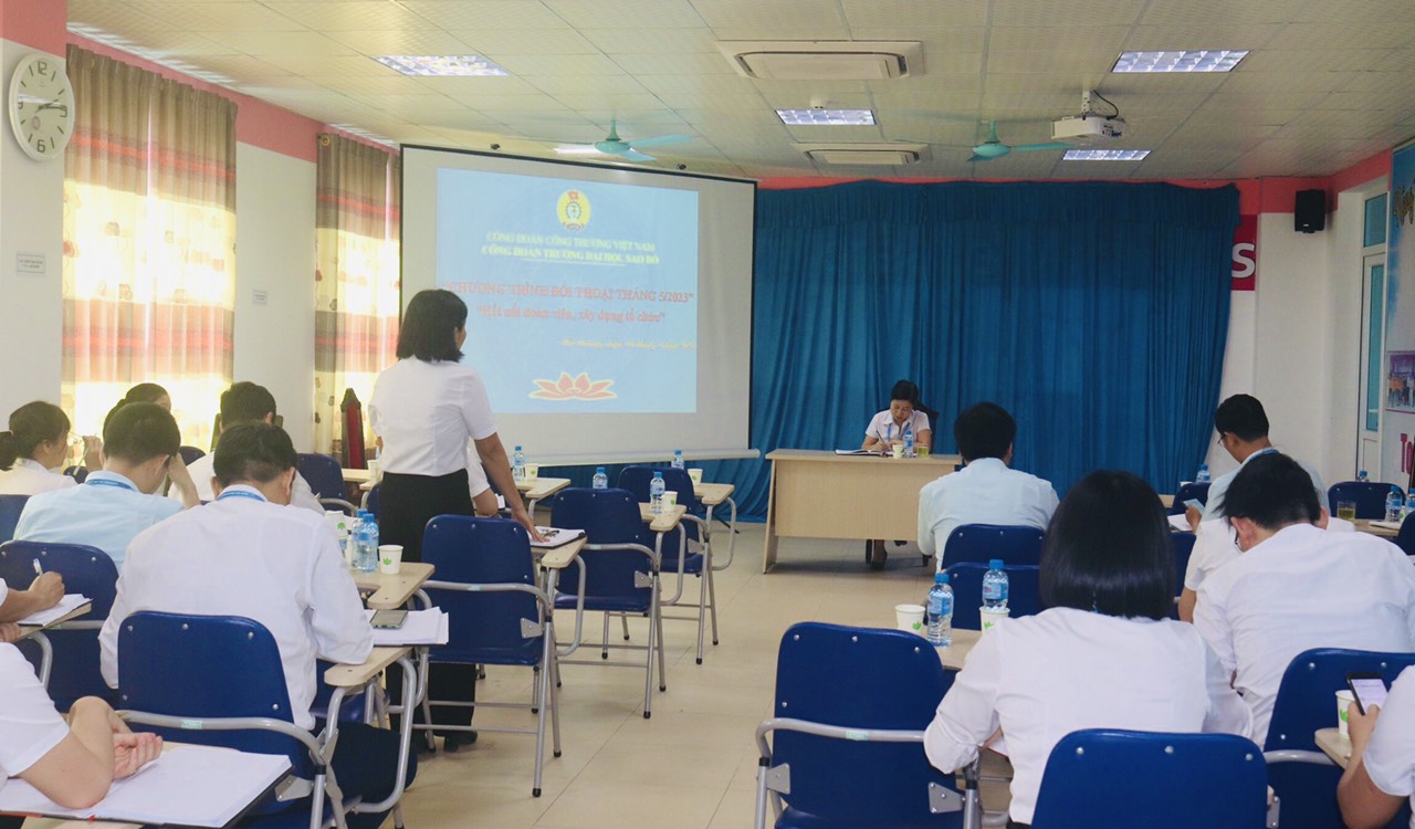 Các nội dung kiến nghị, đề xuất của cán bộ công đoàn đã được đồng chí Chủ tịch Công đoàn Trường tiếp thu, ghi nhận. Để tiếp tục “Kết nối đoàn viên, xây dựng tổ chức” Công đoàn vững mạnh. Đồng chí Chủ tịch Công đoàn trường khuyến khích, động viên toàn thể các đoàn viên phát huy vai trò, nhiệm vụ của mình, đoàn kết thống nhất, chung sức, đồng lòng, quyết tâm thực hiện tốt những nhiệm vụ được giao. Cán bộ Công đoàn cần quan tâm chăm lo, đại diện, bảo vệ quyền lợi ích hợp pháp, chính đáng của đoàn viên, VCNLĐ; đẩy mạnh công tác tuyên truyền vận động tham gia các hoạt động xã hội từ thiện, văn hóa, thể thao trong VCNLĐ; tích cực tham gia xây dựng cơ quan văn hóa; xây dựng tổ chức Công đoàn vững mạnh, nâng cao vị thế, uy tín của tổ chức Công đoàn Trường Đại học Sao Đỏ.