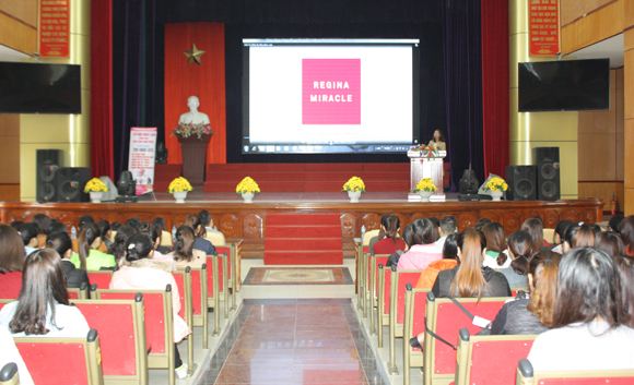 Tại buổi tuyển dụng, sinh viên nhà trường đã được nghe đại diện Công ty giới thiệu về sự phát triển của Regina Miracle International Việt Nam: Được thành lập vào tháng 03 năm 2014, với quy mô 30.000 lao động địa chỉ tại khu công nghiệp VSIP Hải Phòng, là doanh nghiệp 100% vốn Hồng Kong của tập đoàn Regina Miracle, chuyên sản xuất các kiểu mẫu trang phục nội y cho các hãng thời trang và trang phục thể thao hàng đầu thế giới như Victoria’s Secret, Adidas, Under Armour…. Với sự phát triển ngày càng lớn mạnh, công ty có nhu cầu tuyển dụng lên đến hơn 20.000 người ở nhiều vị trí khác nhau.