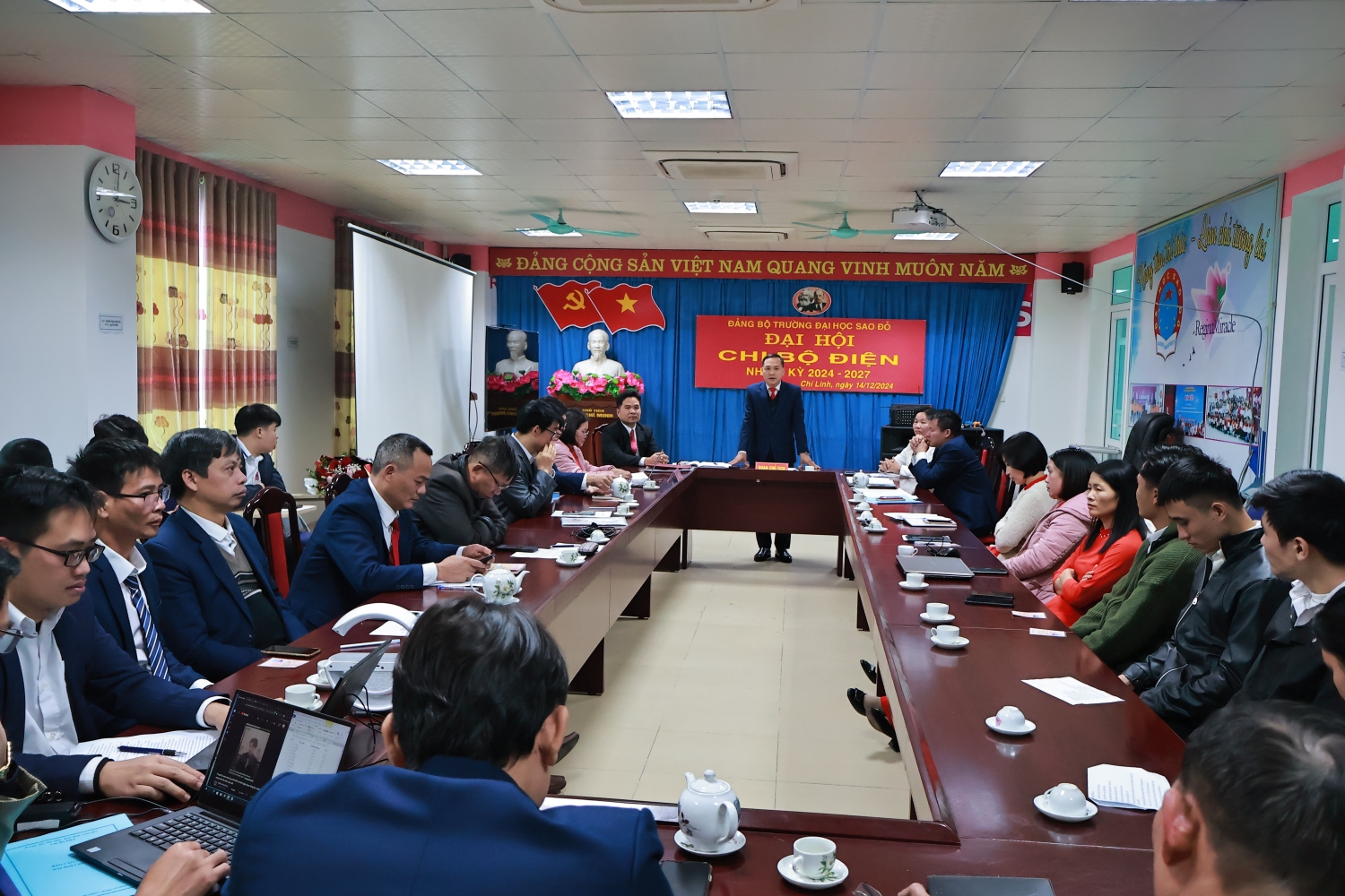Lãnh đạo nhà trường phát biểu giao nhiệm vụ cho các chi bộ tại đại hội