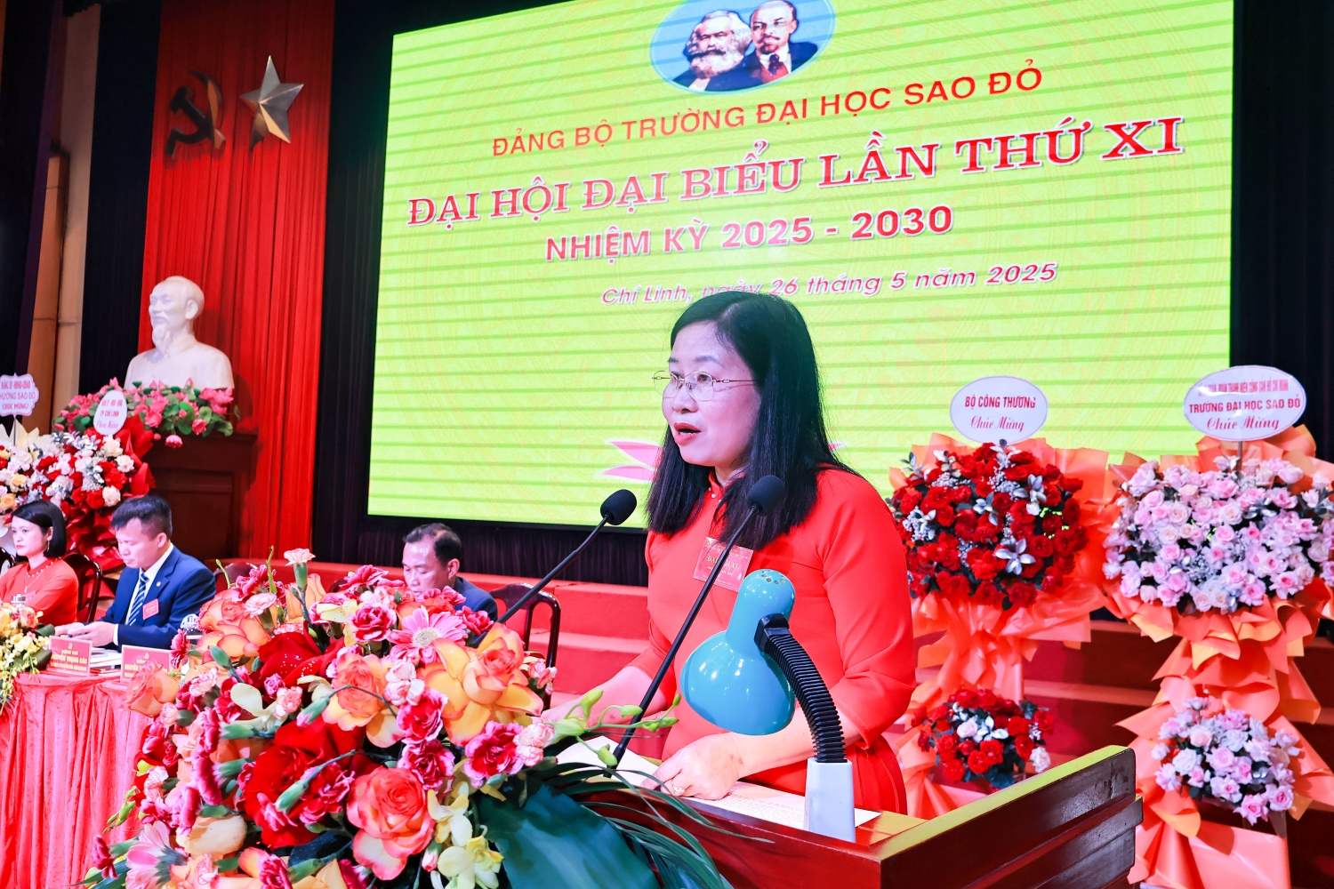 Về dự Đại hội, đồng chí Hoàng Quốc Thưởng - Ủy viên Ban Thường vụ Tỉnh ủy, Bí thư Thành ủy, Chủ tịch HĐND thành phố Chí Linh phát biểu khẳng định: Đại hội Đảng bộ lần thứ XI là sự kiện chính trị quan trọng của cán bộ, đảng viên, giảng viên, sinh viên Trường Đại học Sao Đỏ, đồng chí đánh giá cao Báo cáo chính trị của Đảng bộ Nhà trường, biểu dương các thành tích của Đảng bộ Nhà trường trong nhiệm kỳ vừa qua. Đồng thời nhấn mạnh Đảng bộ Nhà trường cần thực hiện triển khai việc xây dựng tầm nhìn phù hợp với tình hình mới, thiết kế chiến lược dài hạn, nâng cao chất lượng đào tạo nguồn nhân lực, không ngừng phát triển đội ngũ, nâng cao hoạt động nghiên cứu khoa học theo hướng ứng dụng… Đồng chí tin tưởng rằng với những thành tích và kinh nghiệm của nhiệm kỳ vừa qua, với tinh thần đoàn kết, Đảng bộ Nhà trường sẽ thực hiện thắng lợi Nghị quyết đã đề ra, giữ vững danh hiệu Đảng bộ trong sạch vững mạnh, xây dựng Trường Đại học Sao Đỏ ngày càng phát triển.
