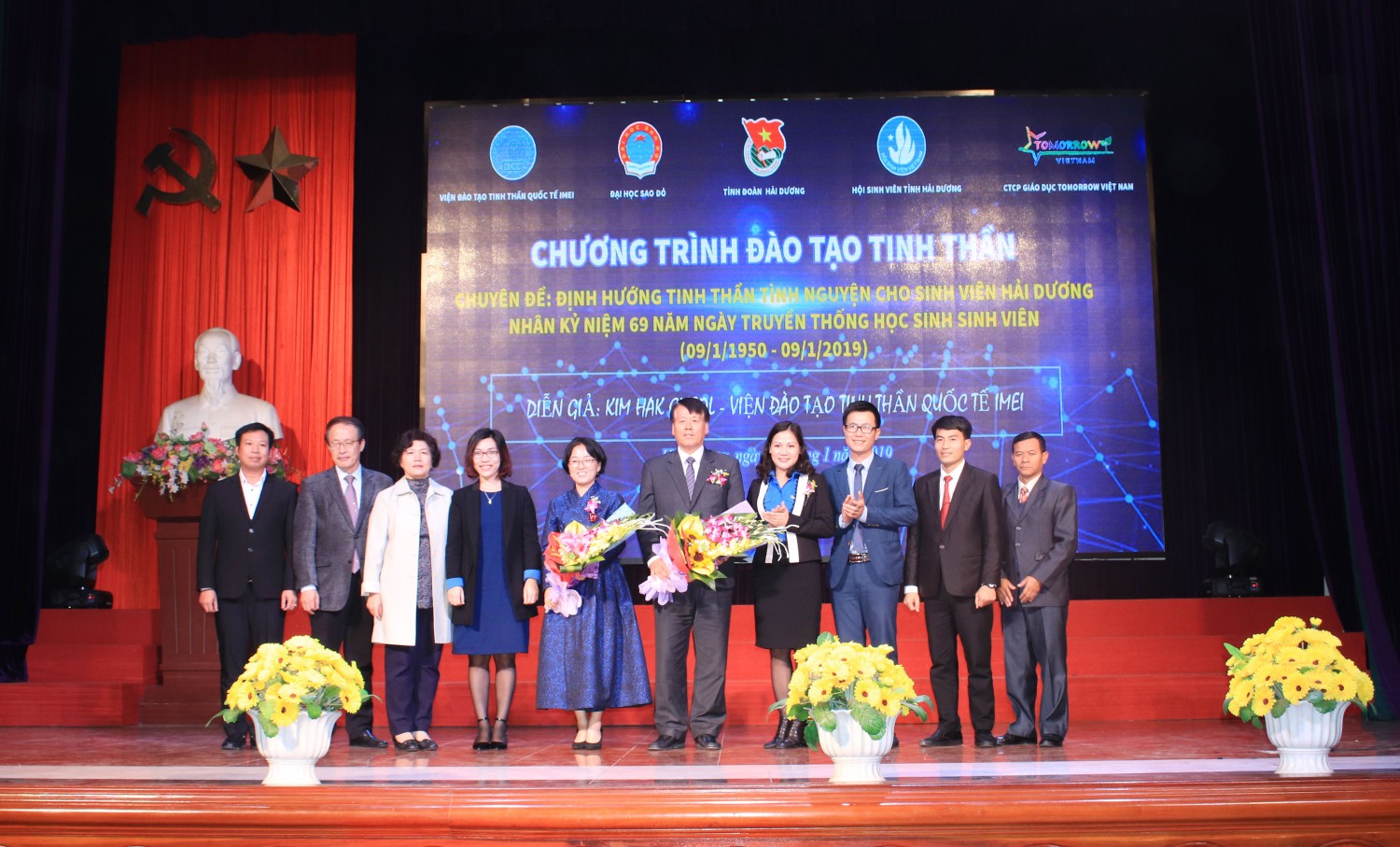 Tham dự chương trình có đồng chí Trịnh Ngọc Ánh – Phó Bí thư Tỉnh đoàn, Chủ tịch Hội sinh viên Việt Nam tỉnh Hải Dương; Bà Lê Thị Thư Thuý – Giám đốc Công ty Cổ phần giáo dục Tomorrow Việt Nam; Bà Lee Kuyng Hee – Cố vấn Công ty Cổ phần giáo dục Tomorrow Việt Nam; Ông Nam Chin Hyang – Giám đốc Viện Đào tạo Tinh thần Quốc tế IYF tại Việt Nam; Ông Kim Hak Choel - Giám đốc Viện Đào tạo Tinh thần Quốc tế IYF tại Thái Lan; Đồng chí Nguyễn Danh Đạo – Bí thư Đoàn Trường Đại học Sao Đỏ; Các đồng chí là Bí thư, Chủ tịch Hội sinh viên các trường Đại học, Cao đẳng trên địa bàn tỉnh Hải Dương và toàn thể sinh viên Nhà trường.