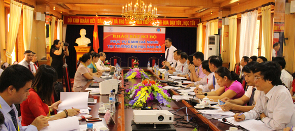 Phát biểu tại buổi làm việc, NGƯT.TS Đinh Văn Nhượng – Bí thư Đảng ủy, Hiệu trưởng khẳng định đợt đánh giá ngoài lần này không những chỉ là kiểm định đánh giá mà còn góp phần nâng cao uy tín của nhà trường với xã hội. Về phía đoàn đánh giá, PGS.TS. Nguyễn Phương Nga đã trình bày tóm tắt mục đích, ý nghĩa, nội dung đợt khảo sát cũng như chương trình làm việc chính của hoạt động đánh giá kiểm định; GS.TSKH. Bành Tiến Long tóm tắt kết quả nghiên cứu báo cáo tự đánh giá hồ sơ minh chứng kèm theo. Đồng thời nêu rõ nguyên tắc làm việc Hội đồng đánh giá ngoài luôn đảm bảo "Trung thực - Khách quan - Chính xác - Luôn nhìn nhận về chiều hướng phát triển của nhà trường".