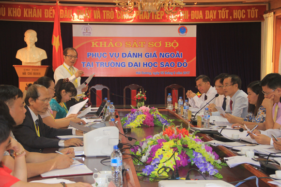 Để phục vụ tốt công tác kiểm định chất lượng giáo dục theo tiêu chuẩn của Bộ Giáo dục và Đào tạo, nhà trường đã thành lập Hội đồng tự đánh giá thực hiện rà soát, tập hợp tài liệu minh chứng theo 10 tiêu chuẩn và 61 tiêu chí quy định về tiêu chuẩn đánh giá chất lượng cơ sở giáo dục đại học của Bộ Giáo dục và đào tạo. Sau hơn 5 tháng chuẩn bị nghiêm túc với sự tư vấn nhiệt tình của các chuyên gia, đến nay, Hội đồng tự đánh giá đã hoàn thành báo cáo tự đánh giá chất lượng giáo dục giai đoạn 2012-2016, được thẩm định và đủ điều kiện đánh giá ngoài chất lượng giáo dục đại học. Sáng ngày 02/8/2017, trường Đại học Sao Đỏ vinh dự được đón tiếp và làm việc với đoàn chuyên gia đánh giá ngoài đến khảo sát sơ bộ phục vụ công tác đánh giá chính thức. Tham dự buổi làm việc có GS.TSKH. Bành Tiến Long - Ủy viên Hội đồng Chính sách Khoa học và Công nghệ Quốc gia, Ủy viên Hội đồng Giáo sư Nhà nước, Chủ tịch Hội đồng đánh giá ngoài; PGS.TS.Nguyễn Phương Nga - Giám đốc Trung tâm kiểm định chất lượng giáo dục - Hiệp hội các trường đại học, cao đẳng Việt Nam; các thành viên hội đồng đánh giá ngoài và các quan sát viên. Về phía nhà trường có NGƯT.TS. Đinh Văn Nhượng – Bí thư Đảng ủy, Hiệu trưởng, các đồng chí trong Ban thường vụ Đảng ủy, Ban Giám hiệu; Hội đồng tự đánh giá nhà trường.