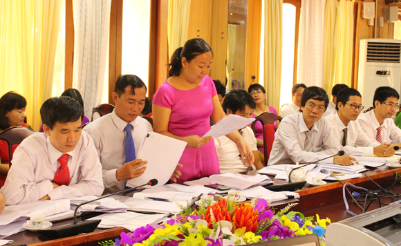 Các nhóm trong Hội đồng tự đánh giá nhà trường thảo luận cùng đoàn đánh giá ngoài