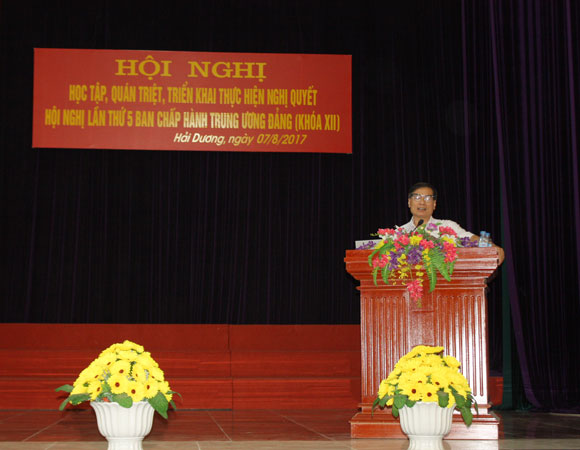 Hội nghị đã được nghe đồng chí PGS.TS Ngô Quang Minh – Nguyên Viện trưởng Viện Kinh tế - Học viện Chính trị Quốc gia Hồ Chí Minh truyền đạt các chuyên đề của Nghị quyết TW5 như: Nghị quyết về Phát triển kinh tế tư nhân trở thành một động lực quan trọng của nền kinh tế thị trường định hướng xã hội chủ nghĩa (XHCN), Nghị quyết về tiếp tục cơ cấu lại, đổi mới và nâng cao hiệu quả doanh nghiệp Nhà nước và Nghị quyết về Hoàn thiện thể chế kinh tế thị trường định hướng XHCN.