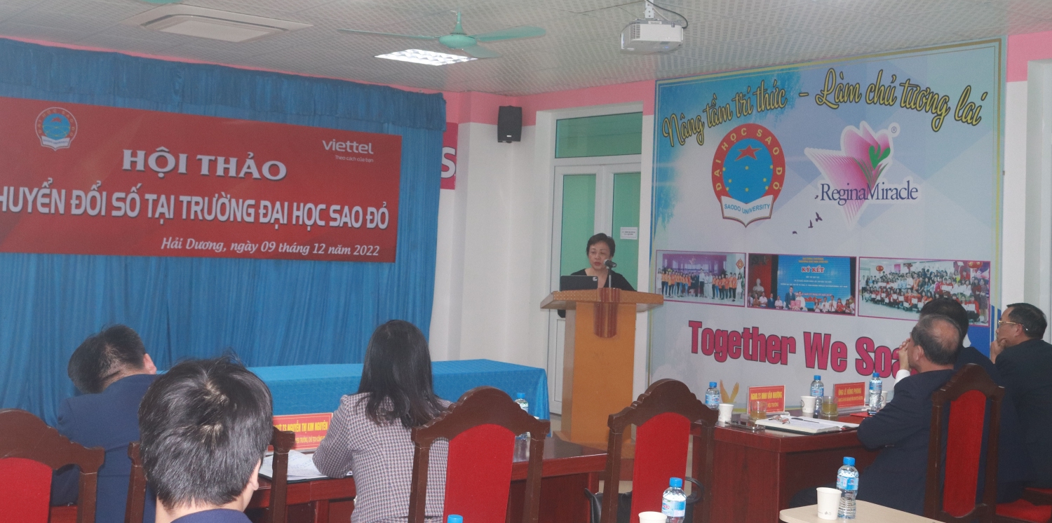 Tại hội thảo Bà Phạm Thị Ngọc Lan và chuyên viên của Tập đoàn công nghiệp viễn thông quân đội Viettel đã trình bày trước hội thảo các giá trị mang lại của chuyển đổi số, nội dung chuyển đổi số trong ngành giáo dục nói chung và hiện trạng chuyển đổi số trong trường Đại học, Cao đẳng. Từ đó đánh giá về hiện trạng công nghệ thông tin về nền tảng số, hạ tầng số của Trường Đại học Sao Đỏ; Xây dựng mô hình chuyển đổi số và lộ trình chuyển đổi số tại Trường.