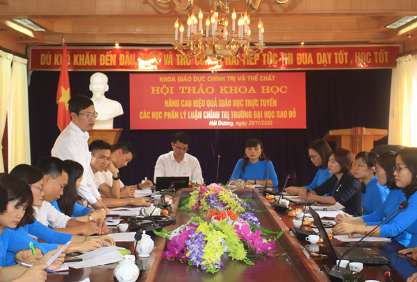 Mô hình giáo dục trực tuyến hiện nay đã đáp ứng xu thế hội nhập về giáo dục, đào tạo trong giai đoạn mới. Việt Nam đã đưa công nghệ thông tin vào công tác giảng dạy, đổi mới phương pháp dạy học, nâng cao chất lượng đào tạo trong các cấp học, bậc học. Năm 2020, trước diễn biến phức tạp của đại dịch Covid-19, để thực hiện phòng chống dịch bệnh và đảm bảo tiến độ đào tạo, các cấp học đã thực hiện giảng dạy trực tuyến và mang lại kết quả bước đầu. Nhằm đánh giá kết quả đạt được đồng thời chỉ ra những hạn chế trong quá trình giảng dạy trực tuyến, ngày 28/11/2020, Khoa Giáo dục chính trị và thể chất, Trường Đại học Sao Đỏ đã tổ chức hội thảo khoa học: “Nâng cao hiệu quả giáo dục trực tuyến các học phần lý luận chính trị Trường Đại học Sao Đỏ”