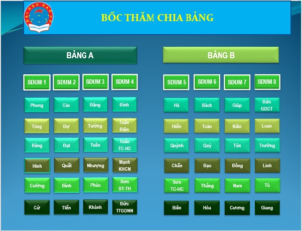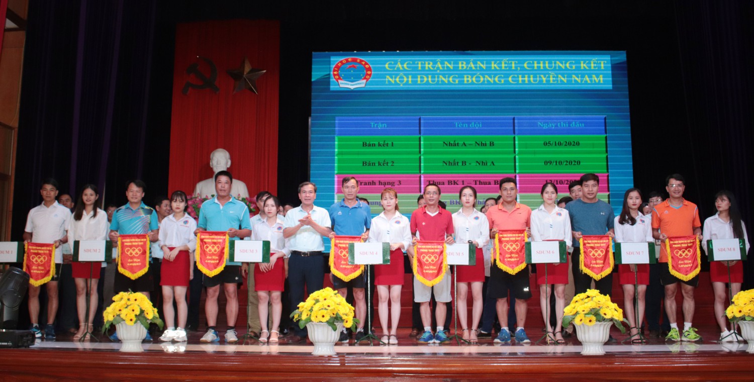 Ban Tổ chức bốc thăm chia bảng và chia đội           Giải đấu được tổ chức từ ngày 24/8 đến ngày 14/10/2020 với sự tham gia tranh tài của 12 đội là liên quân giữa các phòng, khoa, trong đó có 8 đội nam và 4 đội nữ. Tại lễ khai mạc Ban Tổ chức thực hiện bốc thăm chia bảng, kết quả như sau: