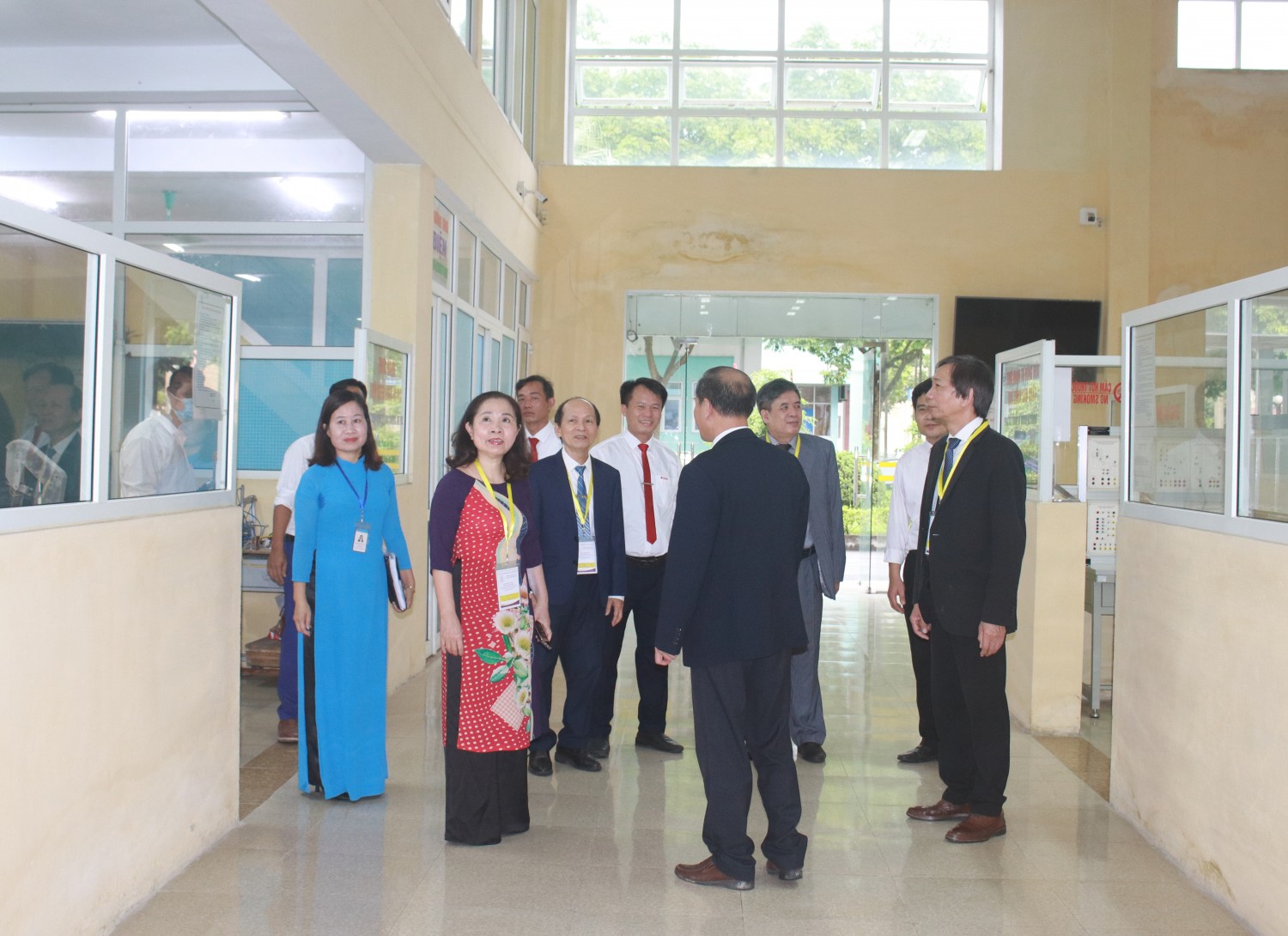 Đoàn chuyên gia đánh giá ngoài khảo sát cơ sở vật chất của nhà trường