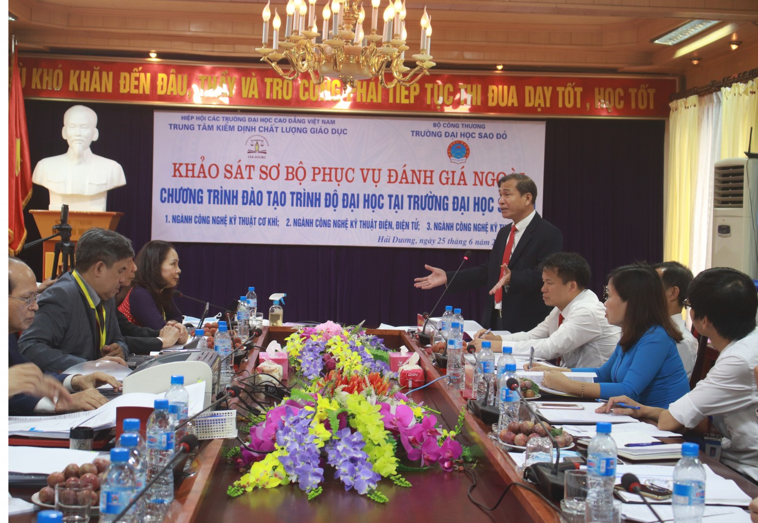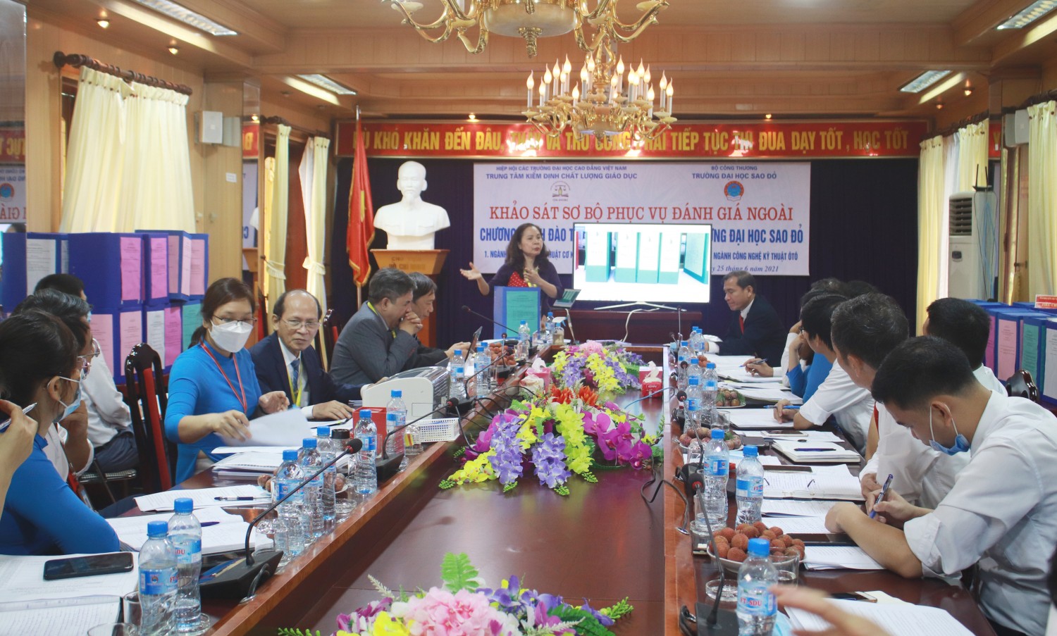 Sáng ngày 25/6/2021, Đoàn chuyên gia đánh giá ngoài của Trung tâm Kiểm định chất lượng giáo dục - Hiệp hội các trường Đại học, Cao đẳng Việt Nam đã tiến hành khảo sát sơ bộ phục vụ đánh giá ngoài 03 chương trình đào tạo trình độ đại học: Ngành Công nghệ kỹ thuật Cơ khí; Ngành Công nghệ kỹ thuật Điện, điện tử và ngành Công nghệ kỹ thuật Ô tô của Trường Đại học Sao Đỏ.