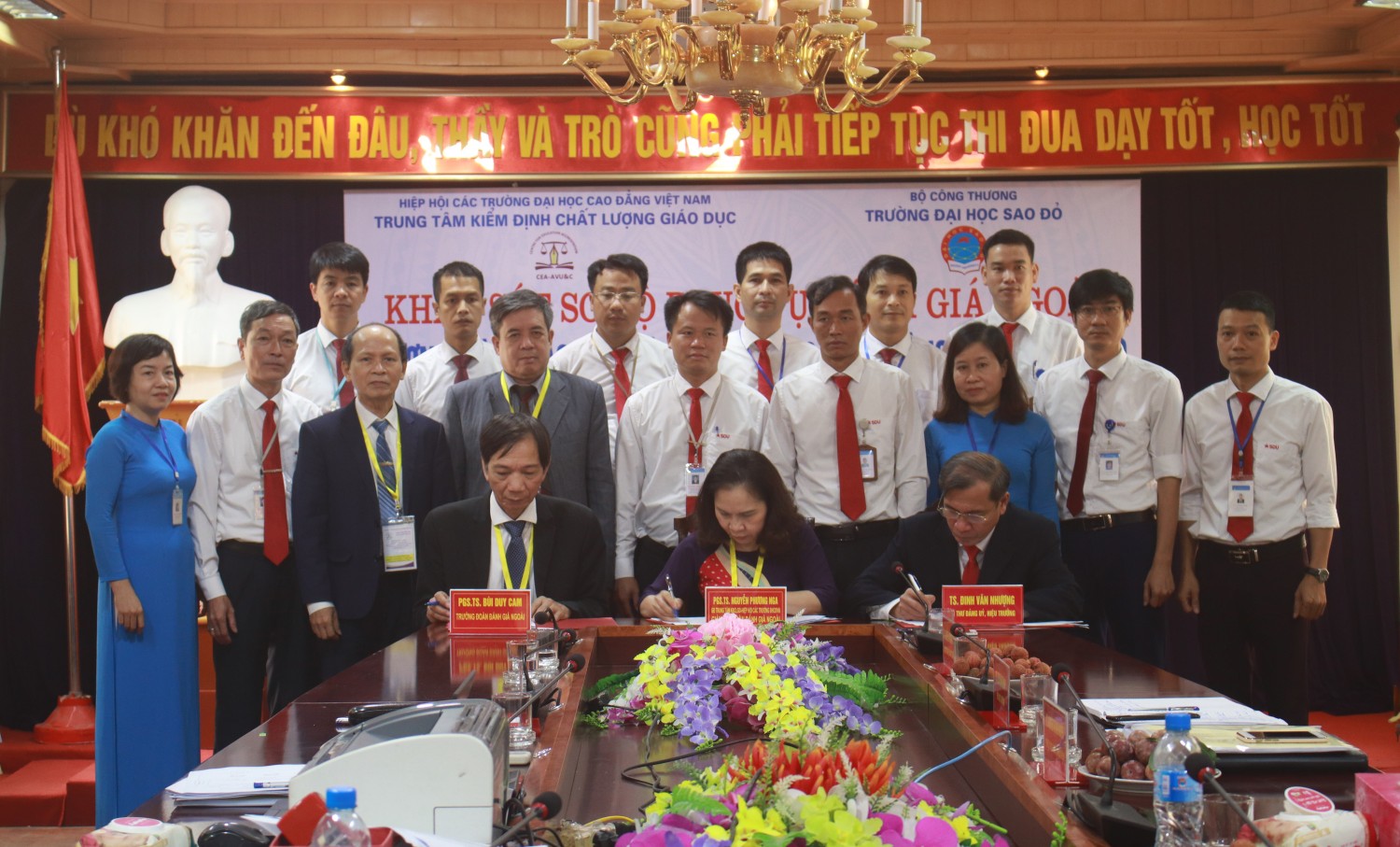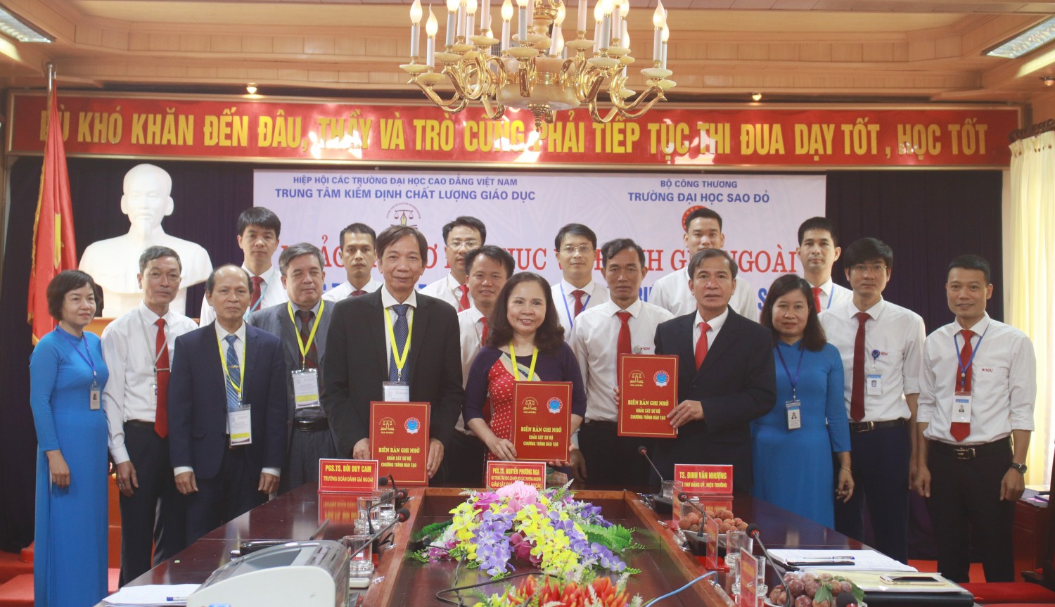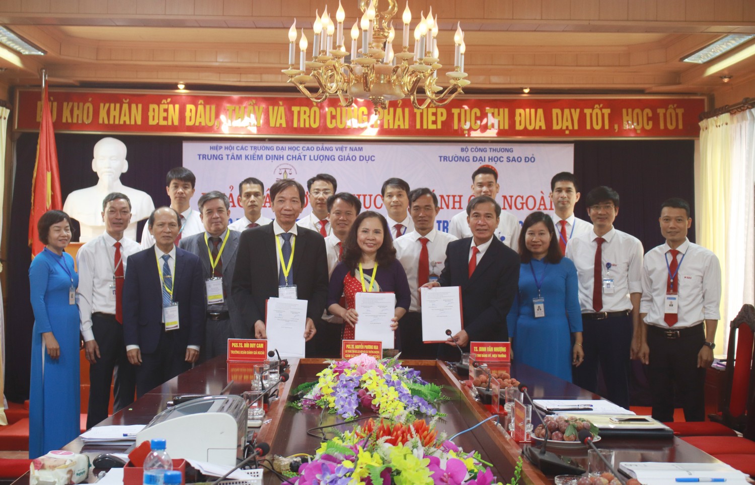 Kết thúc ngày khảo sát sơ bộ, Giám đốc Trung tâm Kiểm định chất lượng giáo dục - Hiệp hội Các trường Đại học, Cao đẳng Việt Nam, Trưởng Đoàn chuyên gia đánh giá ngoài và Hiệu trưởng Trường Đại học Sao Đỏ đã ký Biên bản Ghi nhớ sau khảo sát sơ bộ.
