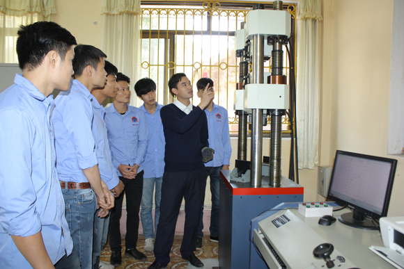 TS. Vũ Văn Tản hướng dẫn sinh viên thí nghiệm khả năng chịu tải trọng
