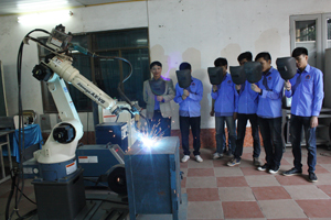 ![]() Thầy và trò Khoa Cơ khí trong giờ thực nghiệm lập trình điều khiển Robot hàn |