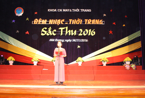 Cô Phạm Thị Hoa Hồng Tươi – Trưởng Khoa CN May & Thời trang phát biểu khai mạc
