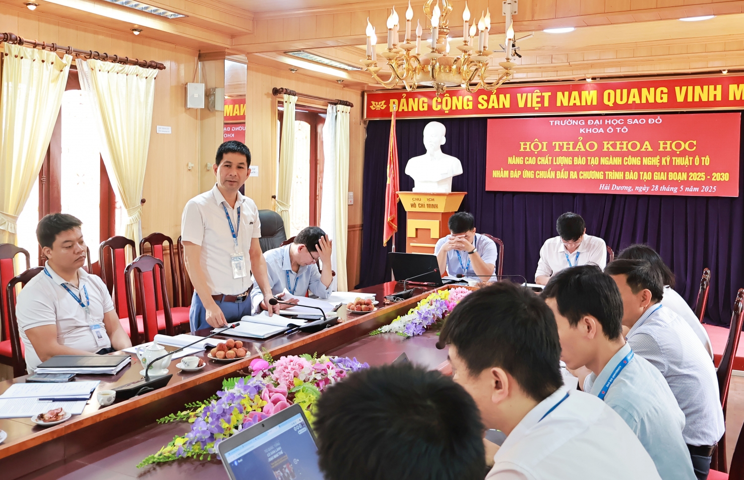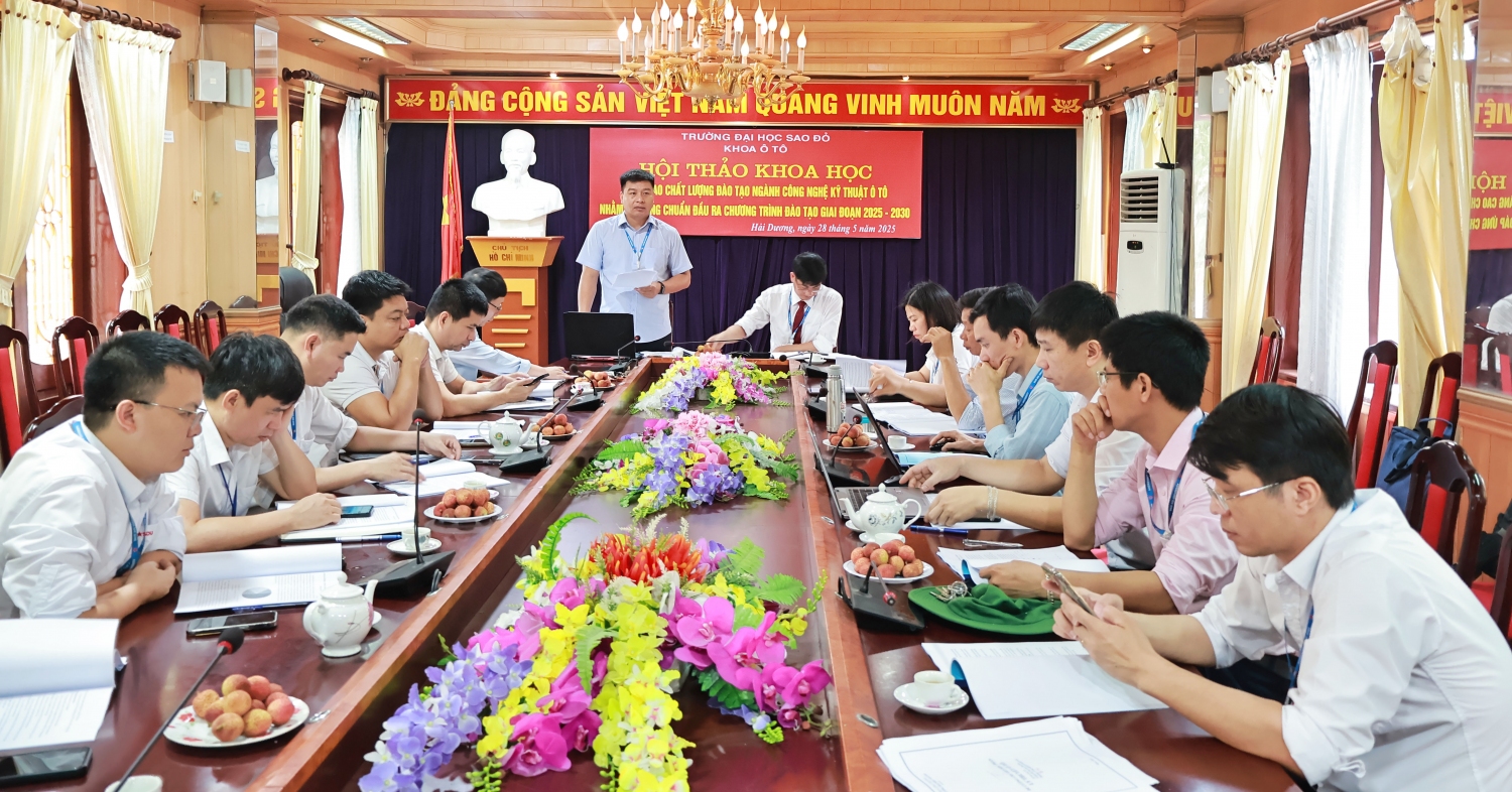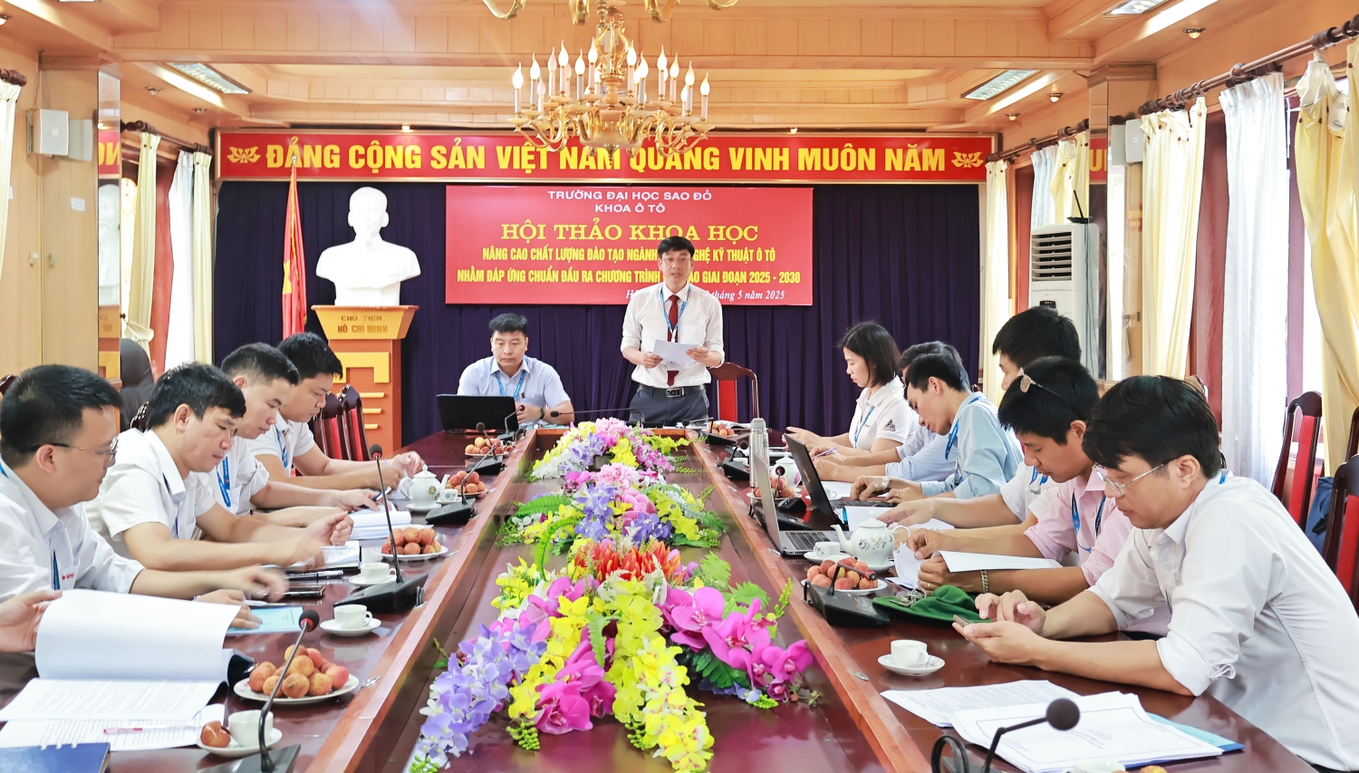 Nhằm tạo diễn đàn giao lưu, trao đổi học thuật chia sẻ kinh nghiệm, nghiên cứu trong đào tạo ngành công nghệ Ô tô và thực tiễn trong sản xuất tại doanh nghiệp. Sáng ngày 28/5/2025, Khoa Ô tô - Trường Đại học Sao Đỏ tổ chức hội thảo khoa học với chủ đề “Nâng cao chất lượng đào tạo ngành công nghệ kỹ thuật ô tô nhằm đáp ứng chuẩn đầu ra chương trình đào tạo giai đoạn 2025-2030”.
