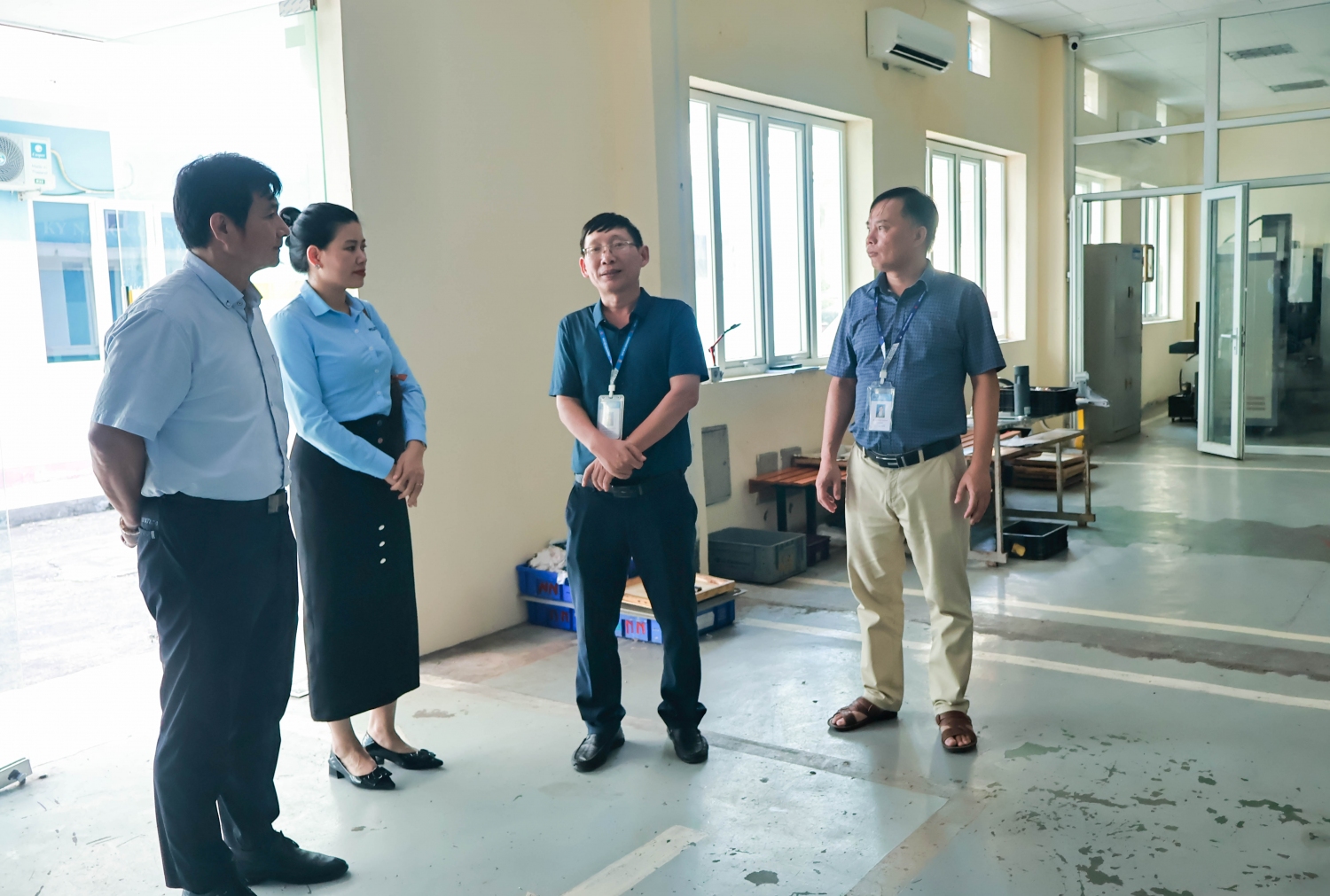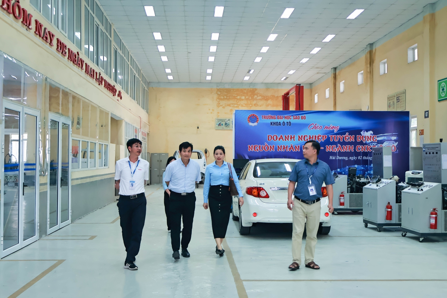 Lãnh đạo Công ty TNHH Pegatron Việt Nam thăm quan các Trung tâm thực hành, thực nghiệm khoa Điện, Ô tô và Cơ khí