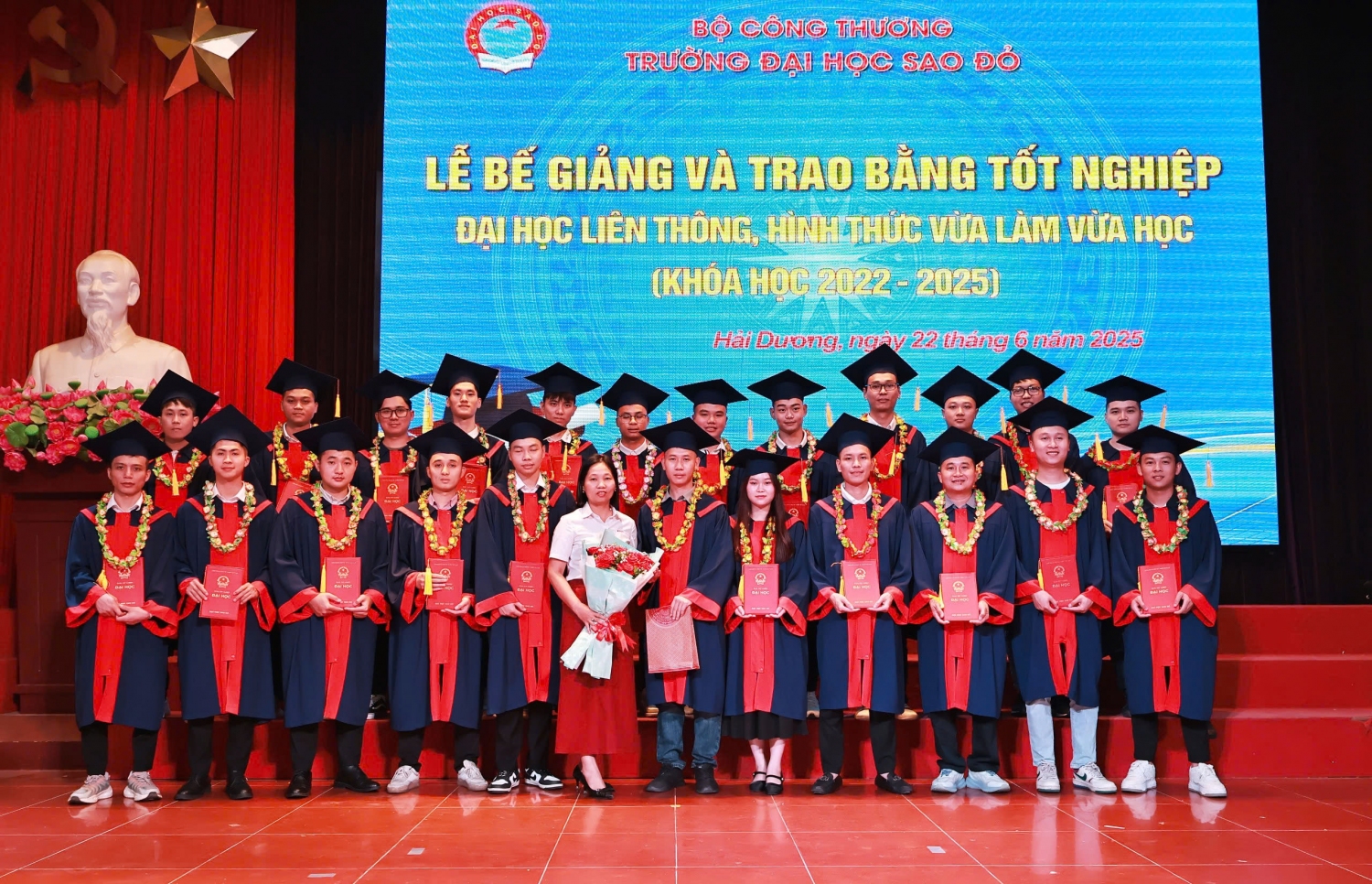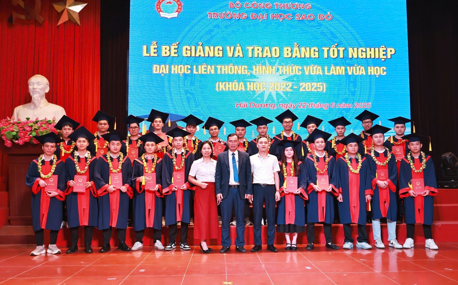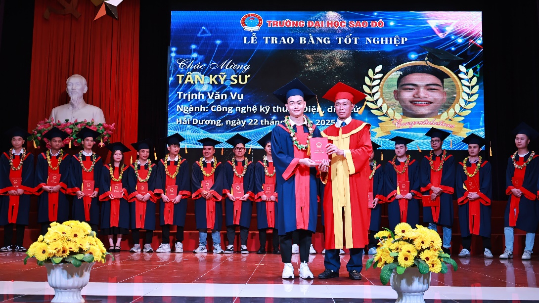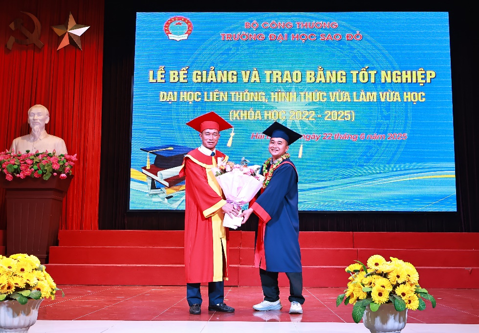 Năm 2022, Trường Đại học Sao Đỏ phối hợp và tổ chức đào tạo Đại học liên thông, hình thức vừa làm vừa học tại Trường Cao đẳng Kỹ thuật Công nghiệp (Bắc Giang). Sau hơn 2 năm học tập các em đã hoàn thành tốt chương trình đào tạo. Sáng ngày 22/6/2025, Trường Đại học Sao Đỏ tổ chức Lễ bế giảng và trao bằng tốt nghiệp Đại học liên thông, hình thức vừa làm vừa học (khóa học 2022-2025).