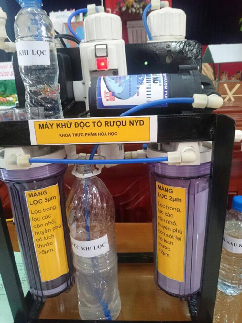 Bùi Sỹ Định – chủ nhiệm đề tài nghiên cứu chia sẻ về “đứa con” tinh thần của nhóm: Qua nhiều lần cải tiến, máy khử độc tố rượu của chúng em với thiết kế nhỏ gọn, đơn giản, dễ thao tác sử dụng, vận hành tốt, tiết kiệm năng lượng, không làm mất mùi rượu, không mất độ rượu và hao hụt rượu trong quá trình lọc, máy có khả năng hấp thụ hầu hết các chất độc có trong rượu như andehyd, metanol, frurol.....