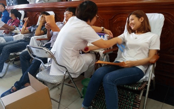 Trần Thị Hòa tham gia hoạt động hiến máu tình nguyện năm 2016