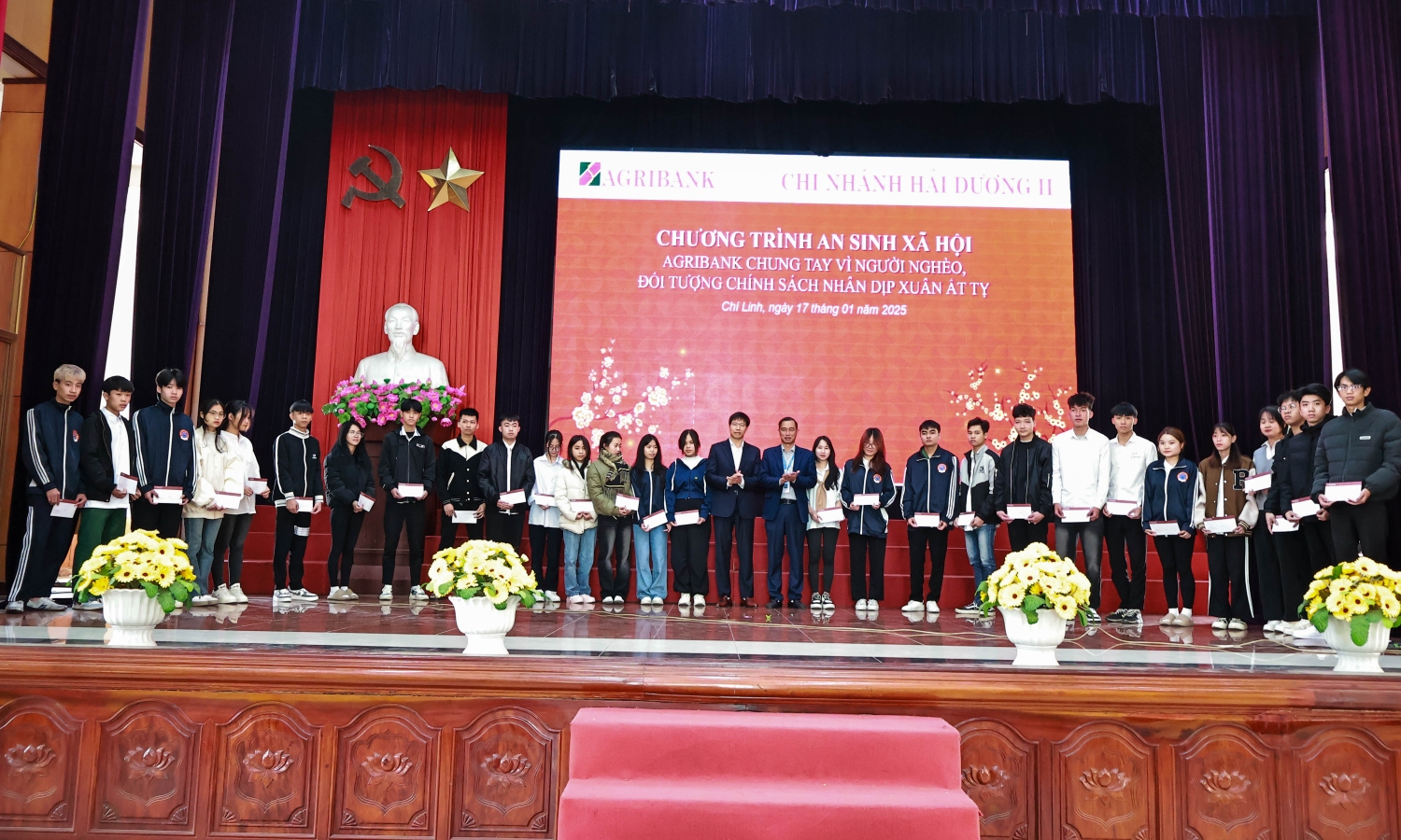 Nhằm động viên tinh thần và giúp các sinh viên có thêm niềm tin, nghị lực vượt qua khó khăn, tiếp tục vươn lên trong học tập và cuộc sống, nhân dịp Tết Nguyên đán Ất Tỵ năm 2025, Ngân hàng Nông nghiệp và Phát triển nông thôn chi nhánh Hải Dương II - Đơn vị có mối quan hệ gắn bó mật thiết với Nhà trường đã trao các suất quà cho sinh viên nghèo vượt khó học tập. Thay mặt lãnh đạo Ông Nguyễn Văn Thắng – Phó Giám đốc Ngân hàng Agribank chi nhánh Hải Dương II và TS. Đỗ Văn Đỉnh – Phó Hiệu trưởng Trường Đại học Sao Đỏ đã trao 30 suất quà cho sinh viên.