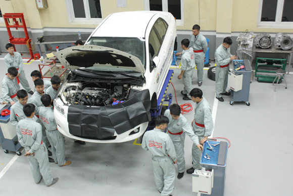 Sinh viên trong giờ thực hành tại Trung tâm đào tạo Kỹ thuật Toyota (T-TEP)