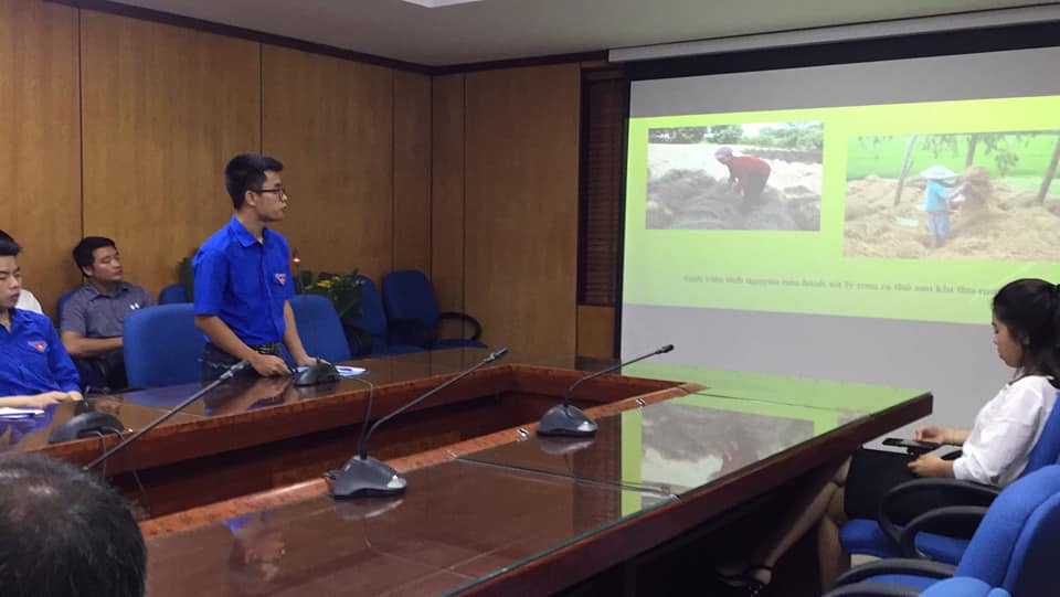 Sinh viên Vũ Trung Kiên, thuyết trình đề tài “Rơm rạ và bài toán xử lý” tham gia Cuộc thi Ý tưởng thanh niên tình nguyện
