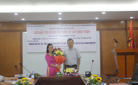 Sáng ngày 27/8/2016, tại Học viện Khoa học công nghệ, Viện Hàn lâm khoa học và công nghệ Việt Nam đã diễn ra lễ bảo vệ Luận án Tiến sĩ của nghiên cứu sinh Hoàng Thị Hòa, chuyên ngành Hóa hữu cơ, mã số 62.44.01.14 với đề tài: “Nghiên cứu chế tạo, tính chất và ứng dụng của một số vật liệu cao su SILICA NANOCOMPOZIT”. Luận án được thực hiện dưới sự hướng dẫn khoa học của PGS. TS. Đỗ Quang Kháng và PGS. TS. Ngô Kế Thế.