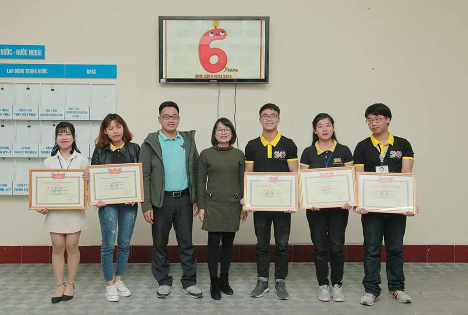 Sinh viên Trần Thành Thái (ngoài cùng bên phải) nhận giấy khen của Hội sinh viên