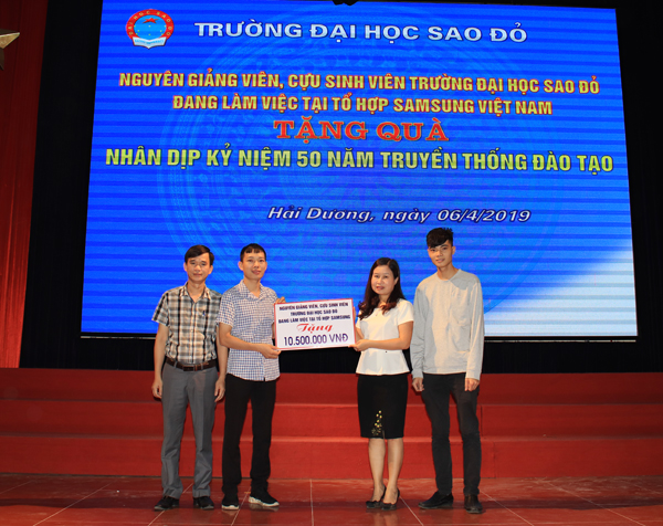 cựu sinh viên Trường Đại học Sao Đỏ đang làm việc tại tổ hợp Sam Sung Việt Nam trao tặng