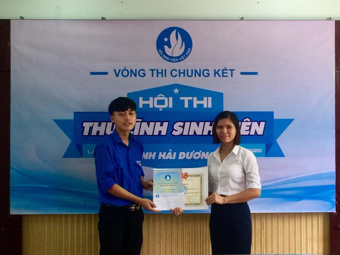 Hội sinh viên tỉnh Hải Dương trao giải Nhất cho sinh viên Tạ Đức Hùng(Trường Đại học Sao Đỏ)