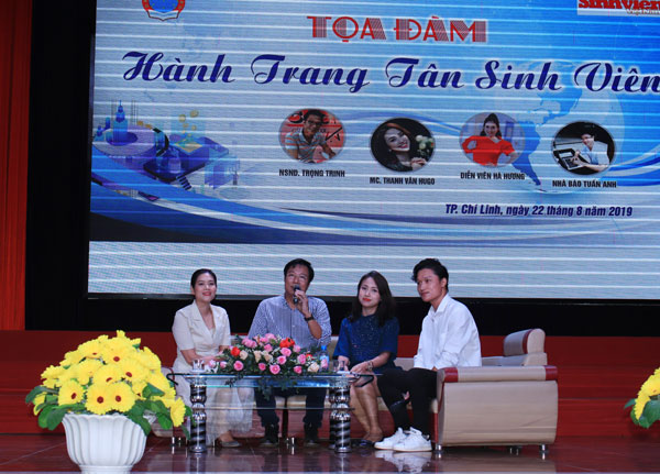 Cũng với chủ đề tân sinh viên cần tạo dựng hành trang gì khi bước chân vào đại học, trong phần giao lưu cùng nghệ sĩ với chủ đề “Sống tích cực”, các nghệ sĩ đã chia sẻ rất nhiều điều thú vị trong cuộc sống, thời còn là sinh viên và công việc hiện tại của mình, đồng thời cũng có những lời khuyên bổ ích với các tân sinh viên Nhà trường. Như một người cha, người chú, NSND Trọng Trinh khuyên nhủ và khích lệ sinh viên bằng những câu chuyện thú vị về sự tự tin, sự nỗ lực, sự quyết tâm vượt lên chính bản thân mình để có được kết quả học tập tốt cũng như những thành công trong nghề nghiệp mà mình đã lựac họn. Diễn viên Hà Hương – người đóng vai Nguyệt thảo mai trong bộ phim nổi tiếng “Phía trước là bầu trời” cũng tiết lộ, chị đã ba lần trượt… đại học nhưng vẫn không bỏ cuộc. Có được sự nổi tiếng như vai diễn “Nguyệt thảo mai” là kết quả của sự cố gắng học tập, trau dồi kỹ năng diễn xuất của mình. Giao lưu với câu hỏi của các bạn sinh viên về khái niệm thành công, chị chia sẻ: “Thành công chỉ đơn giản là kết quả công việc mình làm mà mình cảm thấy hạnh phúc”. Bởi vậy, đối với sinh viên chị khuyên, hãy làm những việc mình say mê, yêu thích và đem lại hạnh phúc cho mình. Còn MC Thanh Vân Hugo – Một MC và diễn viên được nhiều khán giả màn ảnh yêu thích cũng có những chia sẻ kinh nghiệm rất quý báu đối với tân sinh viên nhà trường. Chị chia sẻ: “Đã là sinh viên thì không thể tránh khỏi những lúc khó khăn, nhưng không vì thế mà nghĩ chán nản, đó chính là động lực để mình vượt qua những khó khăn trong học tập. Vì con đường đến thành công là mình phải đi qua nhiều chông gai!”. Với những chia sẻ rất ý nghĩa của các khách mời trong chương trình tọa đàm, tân sinh viên Trường Đại học Sao Đỏ đã được trang bị thêm các kỹ năng nghe, nói và nghĩ sâu hơn về các vấn đề đặc biệt định hướng cho mình cần phải làm gì? Có mục tiêu gì cho bản thân? Và cần cố gắng những gì để có được một công việc tốt sau khi ra trường và đi đến thành công trong cuộc sống tương lai.
