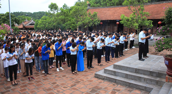 Tân sinh viên dâng hương tại đền thầy giáo Chu Văn An
