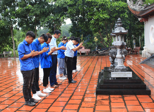 Thanh niên xung kích dâng hương tại Đền thờ nữ Tiến sĩ Nguyễn Thị Duệ
