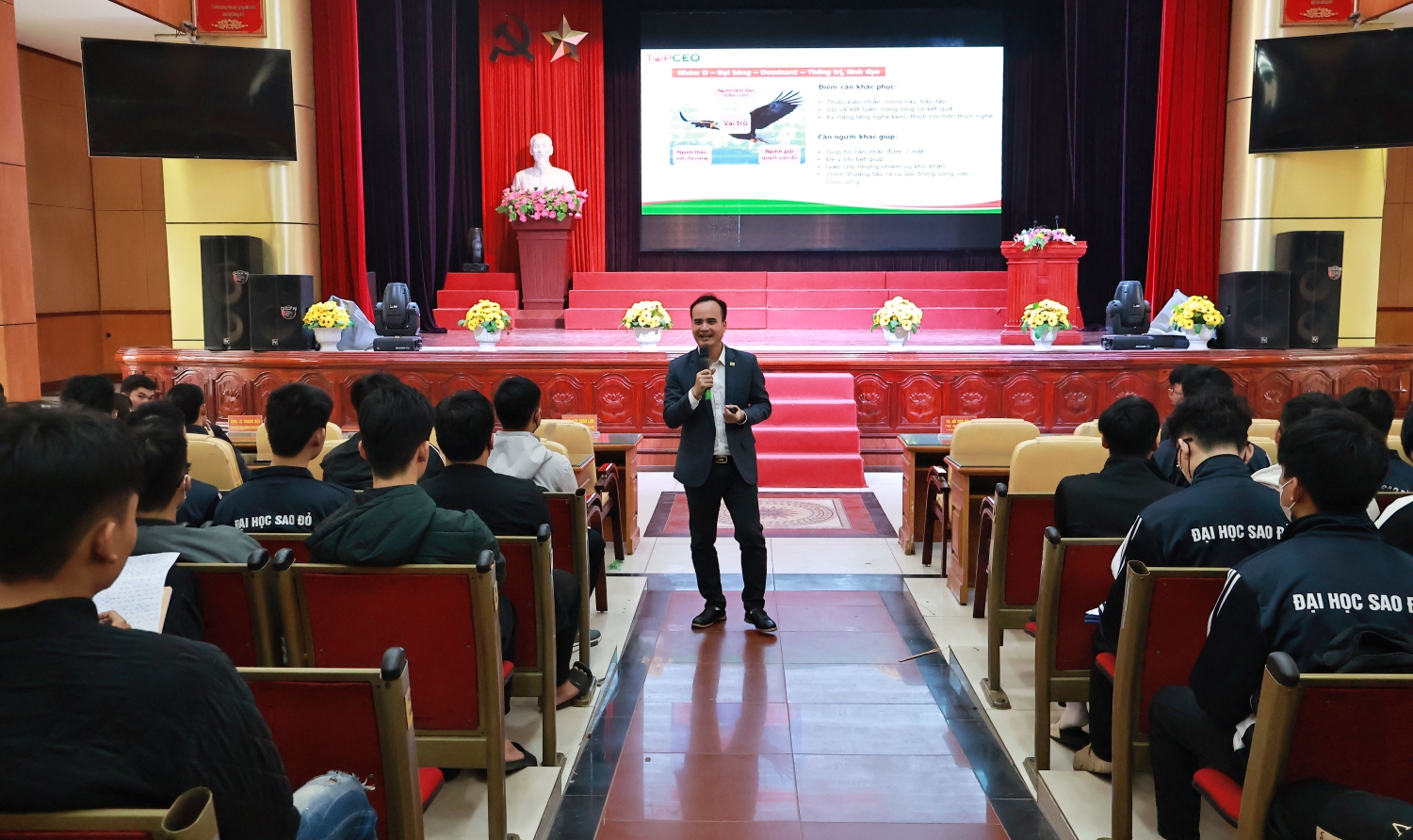 truyền đạt các nội dung tập huấn          Tại buổi tập huấn, cán bộ, giảng viên, sinh viên Nhà trường đã được nghe Ông Nguyễn Văn Huy - Phó Chủ tịch Hiệp hội doanh nghiệp vừa và nhỏ Tỉnh Hải Dương truyền đạt các nội dung về hỗ trợ thanh niên khởi nghiệp đổi mới, sáng tạo thông qua mô hình DISC, giới thiệu đến sinh viên mô hình DISC, là một công cụ xác định tính cách của người đối diện tại một thời điểm nhất định thông qua quan sát hành vi của họ. Theo lý thuyết, tính cách của mỗi người đều nằm trong 4 khuôn mẫu hành vi của 4 nhóm: D (Dominance – Sự thống trị), I (Influence – Sự ảnh hưởng), S (Steadiness – Sự kiên định), C – (Compliance – Sự tuân thủ). Từ đó, giúp sinh viên thấu hiểu tính cách bản thân, tự tin và chọn hướng đi phù hợp, dễ dàng chinh phục các nhà tuyển dụng cũng như khả năng khởi nghiệp độc lập.