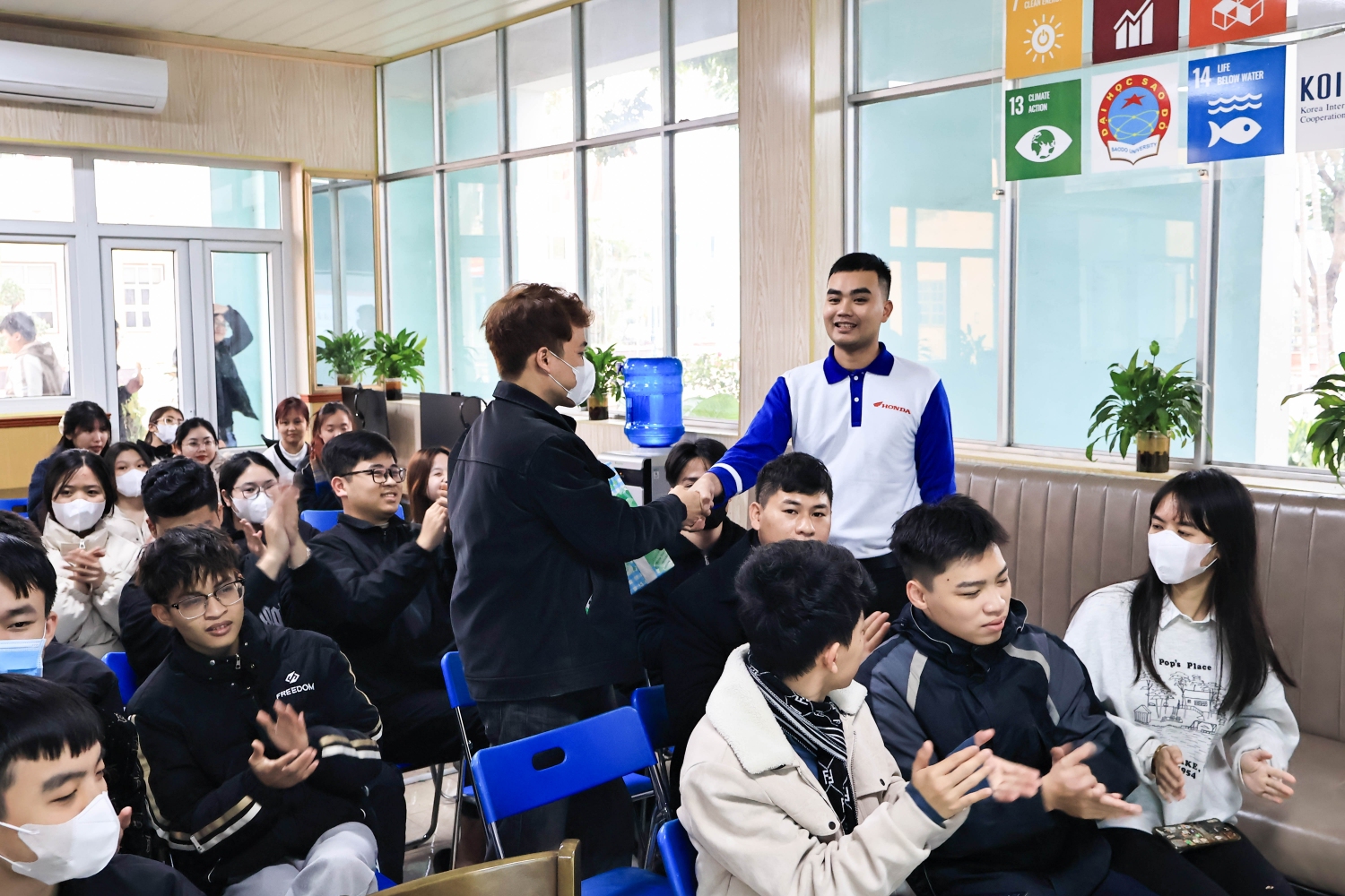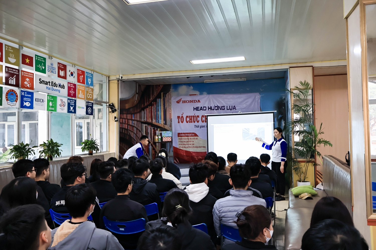 Sinh viên Nhà trường đã được nghe những thông tin hữu ích và giao lưu cùng tuyên truyền viên, đồng thời được hướng dẫn các kỹ năng lái xe an toàn, tham gia thực hành trên sa hình và làm bài khảo sát kiến thức và kỹ năng lái xe an toàn. Đồng thời đại lý Head Honda Hương Lụa tổ chức kiểm tra và thay dầu miễn phí cho 100 xe máy hãng Honda của viên chức và sinh viên Nhà trường.