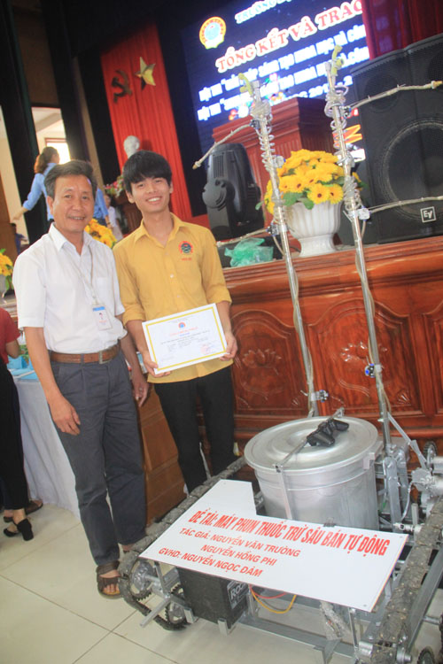 Đạt giải Nhì tại Hội thi “Sinh viên sáng tạo khoa học công nghệ lần thứ III” năm học 2017-2018, máy phun thuốc sâu bán tự động là thành quả cho sự say mê tìm tòi nghiên cứu của nhóm sinh viên Nguyễn Văn Trường, Nguyễn Hồng Phi - Khoa Ô tô, Trường Đại học Sao Đỏ.