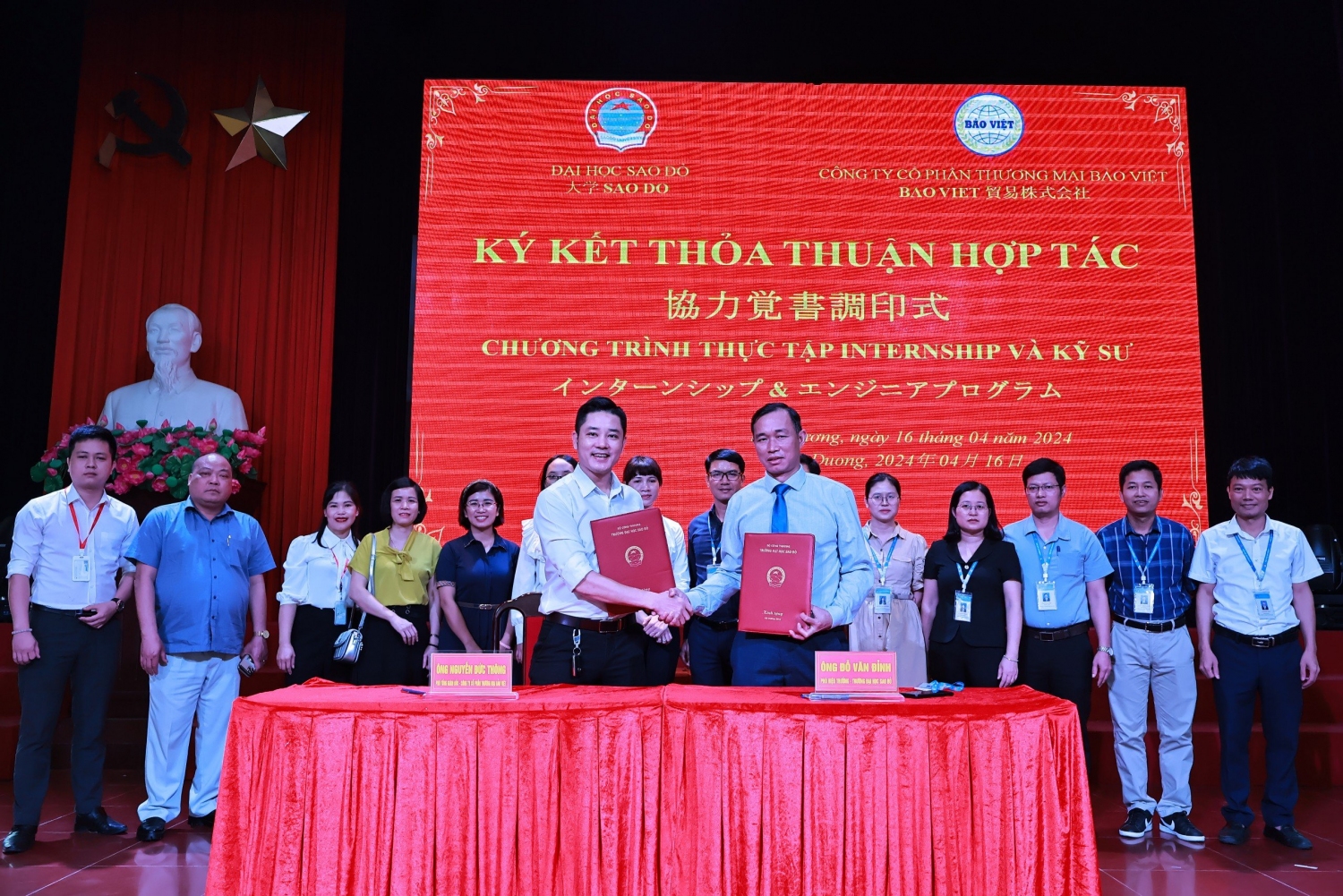 Đội tuyển SDU-GBF (Đại học Sao Đỏ) giành giải Triển vọng tại cuộc thi sáng tạo Robot Việt Nam 2024      Hiện nay, Nhà trường có mối quan hệ với nhiều tập đoàn, nhiều doanh nghiệp lớn như: Toyota Việt Nam; Tập đoàn Hồng Hải; Công ty TNHH NISSAN Việt Nam; Công ty TNHH Canon Việt Nam; Công Ty TNHH Regina Miracle International Việt Nam; Tập đoàn Hòa Phát,…Thông qua nhiều hoạt động, mối quan hệ hợp tác giữa Nhà trường với các doanh nghiệp này càng trở nên gắn kết chặt chẽ hơn. Hợp tác quốc tế của Trường Đại học Sao Đỏ cũng liên tục được mở rộng, phát triển, các dự án, chương trình đào tạo liên kết với đối tác nước ngoài đã được củng cố và tiếp tục triển khai tại trường, nhiều đoàn đại biểu quốc tế đã ghé thăm, giao lưu và làm việc cùng với Nhà trường như: Trường Đại học Giao thông Tây Nam, Trường Đại học Công nghệ Vũ Hán, Trường Đại học Vân Nam, Trường Đại học Lâm nghiệp Bắc Kinh, Trường Đại học Hồ Nam, Trường Đại học Dân tộc Vân Nam, Học viện Văn hóa Quốc tế Thiên Tân, Đại học Hoa Trung (Trung Quốc), Đại học Woosung, Đại học Kyungsung (Hàn Quốc); Học viện Kinh tế - Kỹ thuật Bình Đông, Học viện Kỹ thuật Fortune (Đài Loan); Trường Đại học Tổng hợp Kỹ thuật Irkutsk, Trường Đại học Bách khoa miền Nam Nga, Trường Đại học Tổng hợp Kỹ thuật Moscow, Trường Đại học Kỹ thuật Lâm nghiệp Saint Petersburg (Liên bang Nga); Trường Nhật ngữ AN (Nhật Bản)…