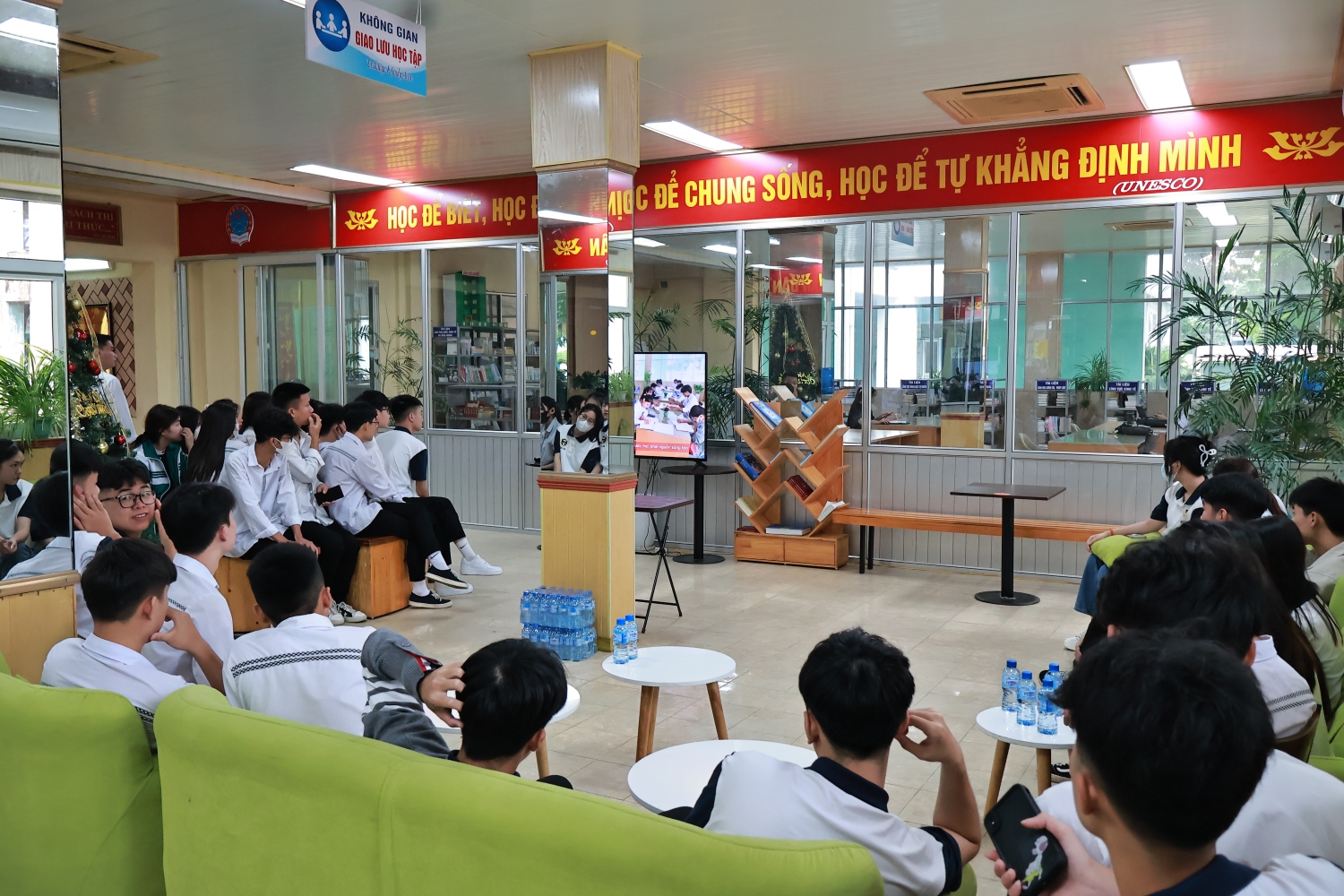 Trung tâm thư viện được thiết kế theo không gian mở phù hợp với kỷ nguyên công nghệ số gồm có: Không gian truyền thông sáng tạo; Không gian giao lưu học tập; Không gian đọc - tra cứu; Phòng Dữ liệu số; Phòng hội thảo; Phòng học liệu. Với trên 4.000 đầu sách tham khảo bằng tiếng Việt và tiếng nước ngoài, được kết nối với cơ sở dữ liệu Proquest Central thuộc Liên hiệp các Thư viện Việt Nam. Đây là không gian mở được thiết kế theo phong cách Gen Z là nơi tạo cảm hứng học tập, kết nối tri thức và đam mê sáng tạo bạn bè bốn phương.