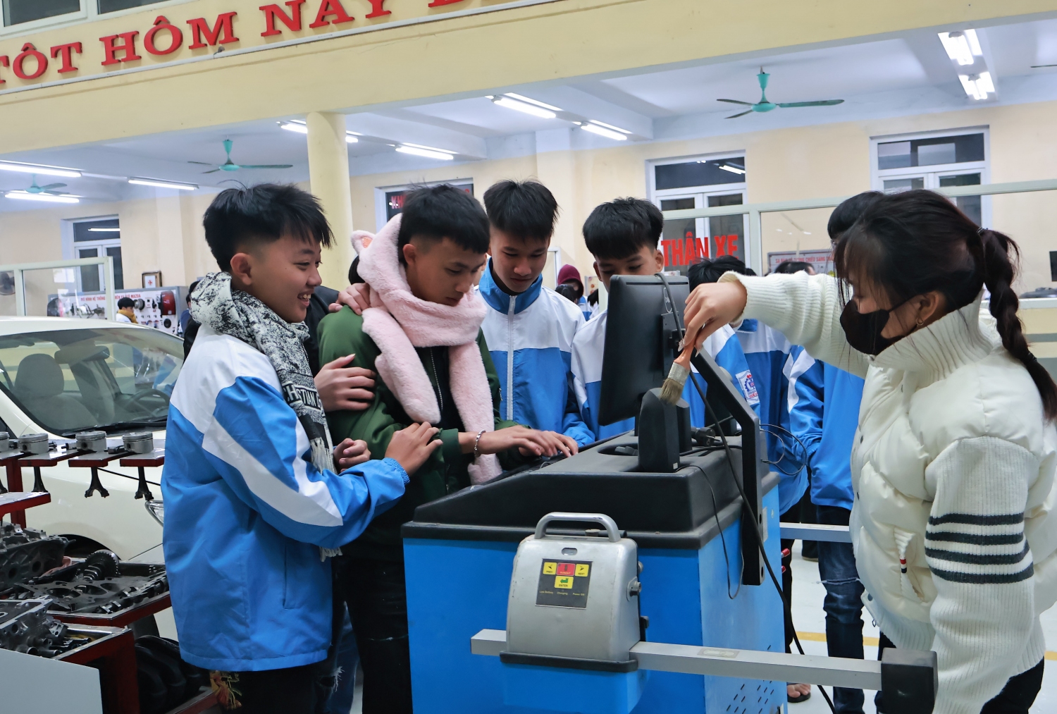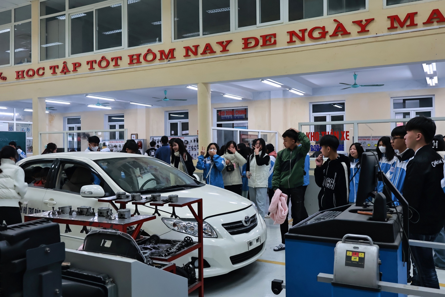 Để hiểu rõ hơn về các ngành đào tạo, các bạn học sinh và các thầy giáo, cô giáo đã được thăm quan các Trung tâm thực hành-thực nghiệm và các lớp học của các khoa đào tạo của Nhà trường.