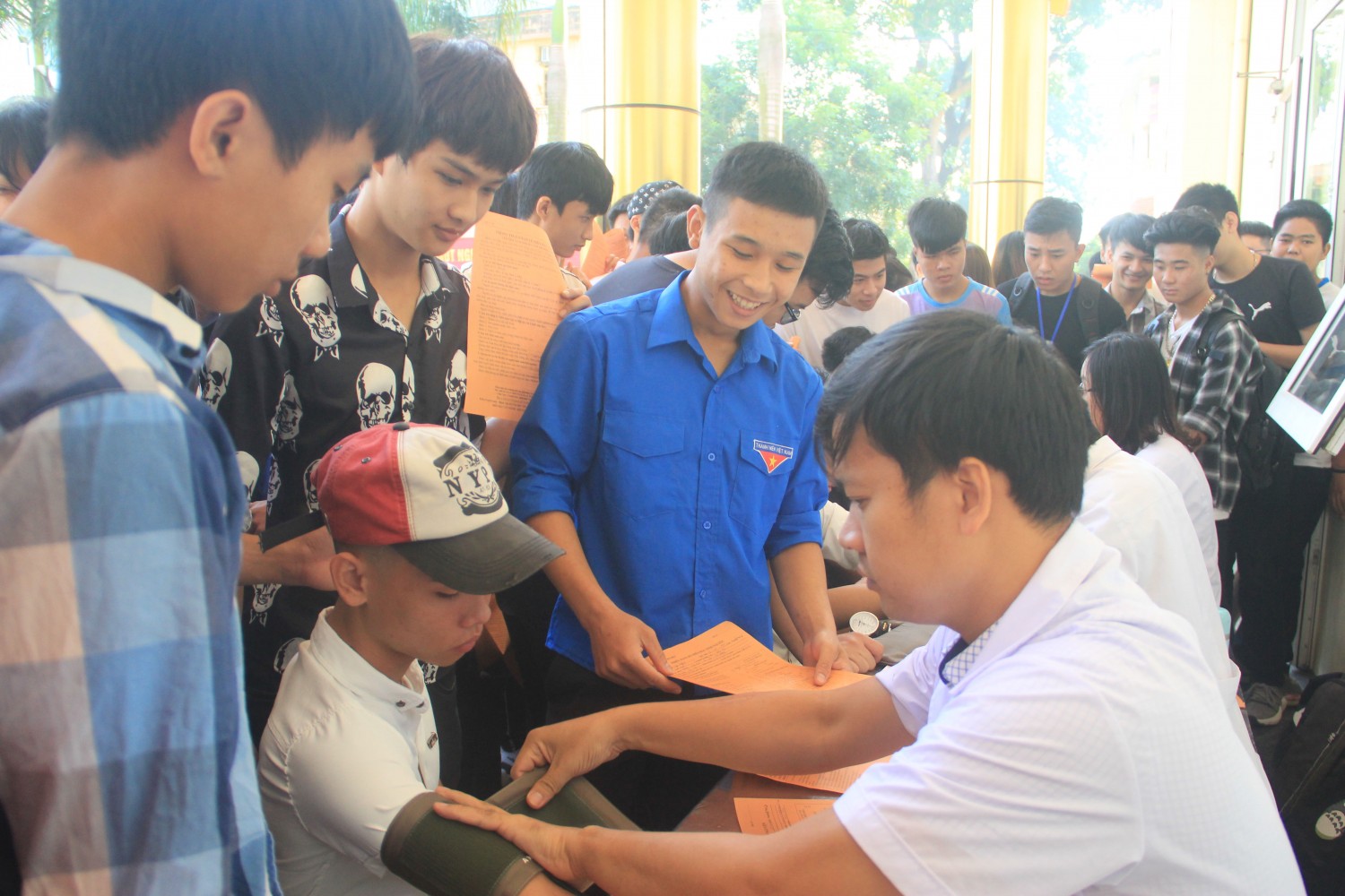 Sinh viên làm các thủ tục trước khi hiến máu